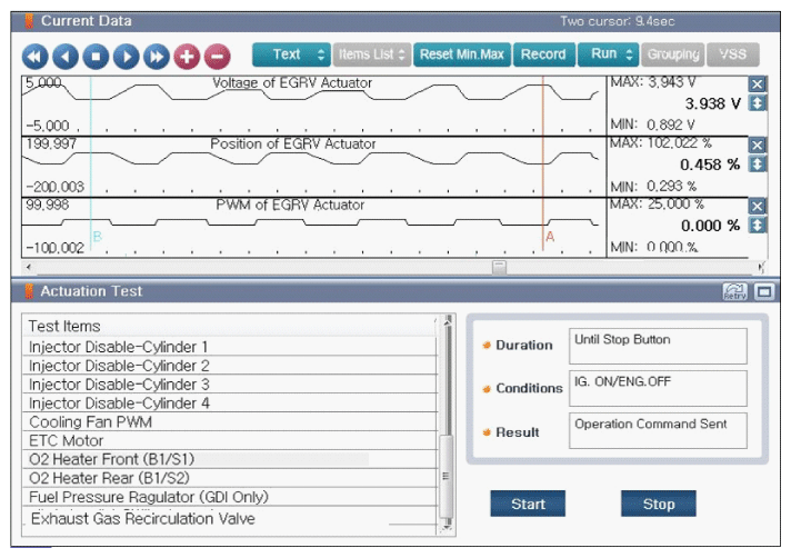 Fig 1: Screen Display - EGR Valve Current Data When Performing Exhaust Gas Recirculation Valve In Actuation Test With KDS/GDS