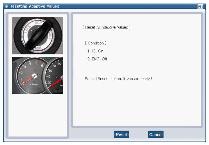 Fig 2: Screen Display - Resetting Adaptive Values Function - Step 1 To 2 (2 Of 2)
