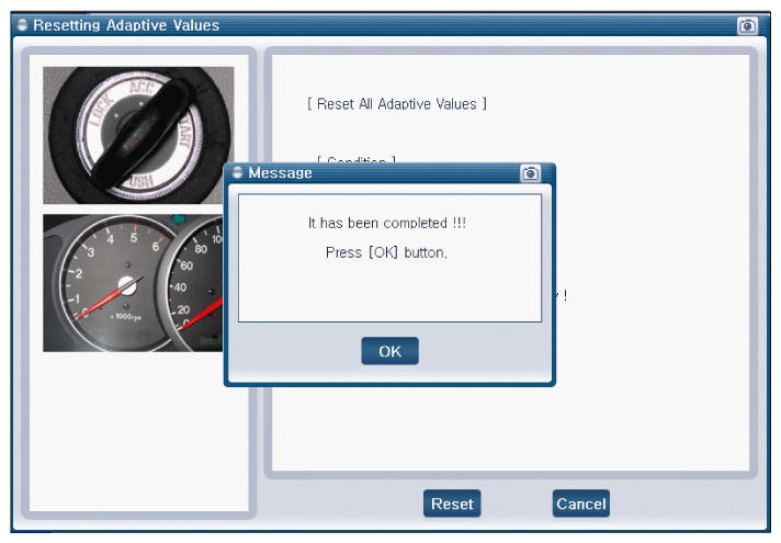 Fig 3: Screen Display - Resetting Adaptive Values Function Completed
