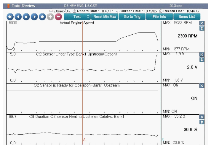 Fig 1: Screen Display - Current Data Of O2 Sensor Heater Duty At Approx. 2300 RPM