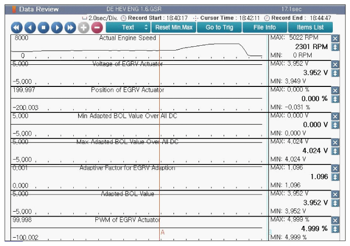 Fig 1: Screen Display - Current Data Of EGR Value At Approx 2300 RPM