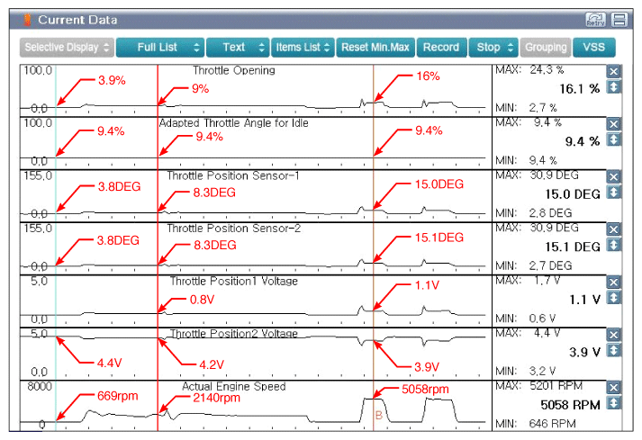 - Check the "Current Data" about related DTC with GDS.