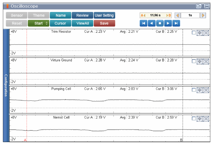 Channel A (+): Pin No. 6 (V_RC) terminal of Upstream O2 Sensor.