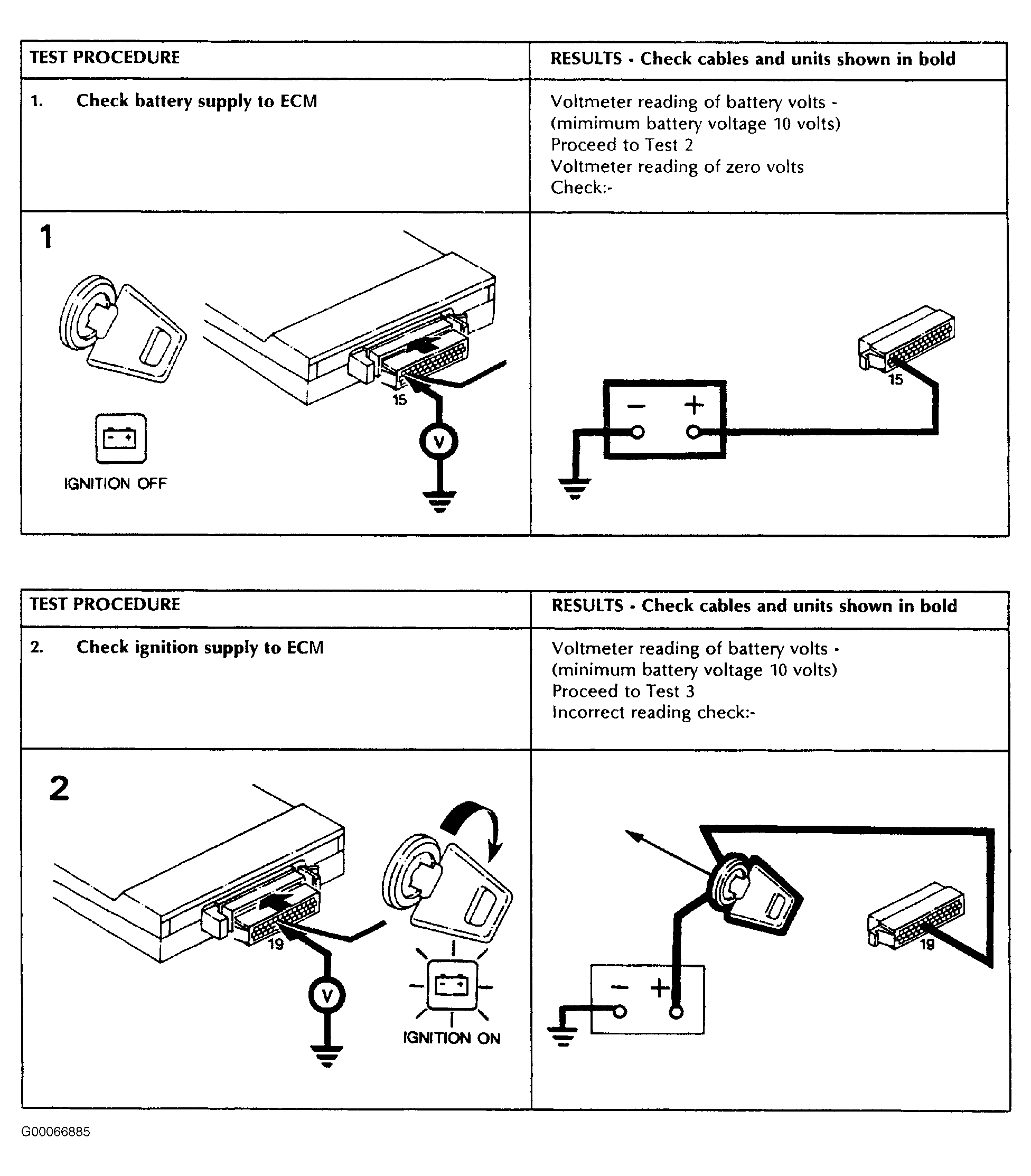 Fig 1: Engine Control Module Power Circuits Test Procedure No. 1 & 2 (1987-88)