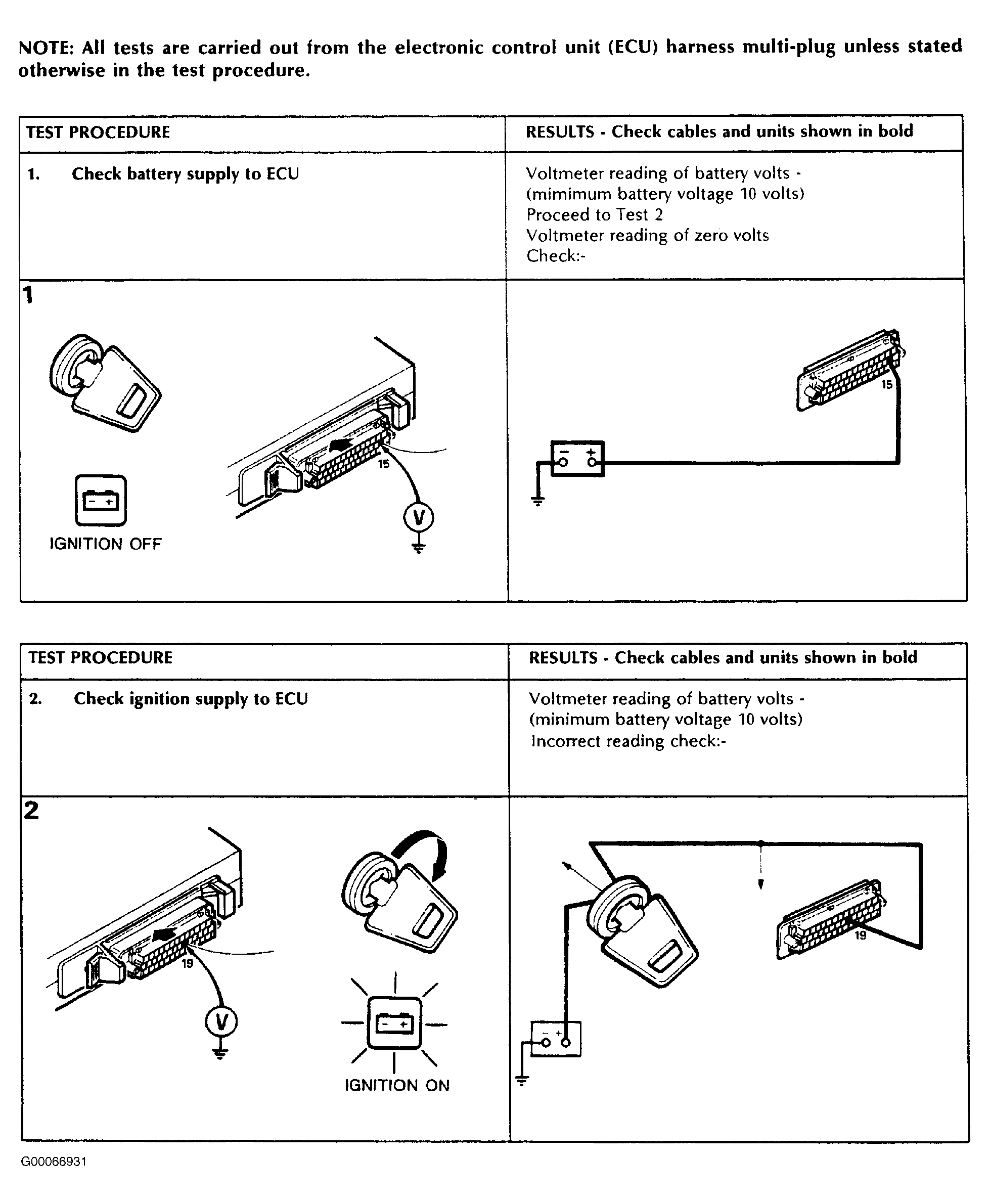 Fig 2: Engine Control Module Power Circuits Test Procedure No. 1 & 2 (1989-91)