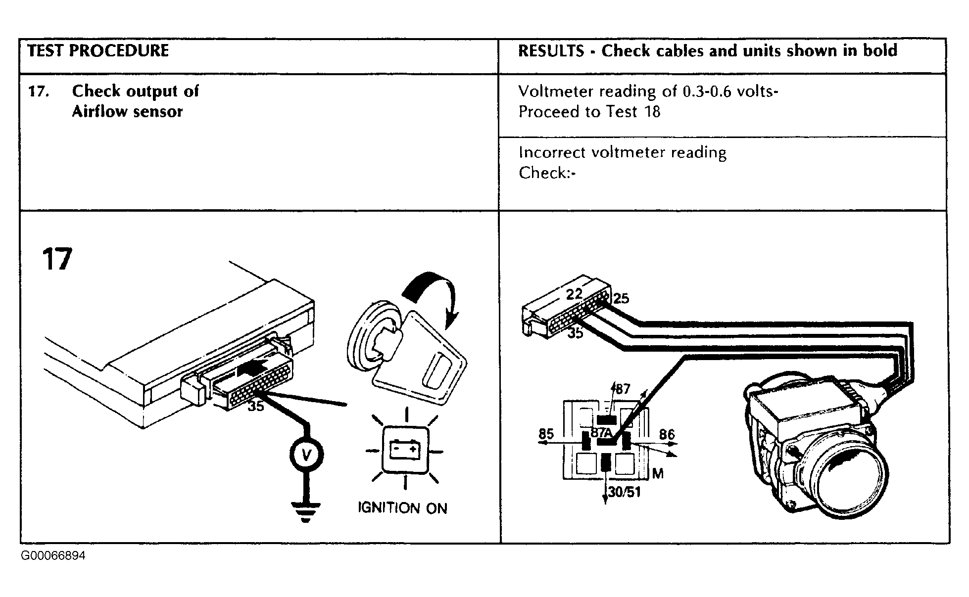 To test mass air flow sensor, see Fig 1