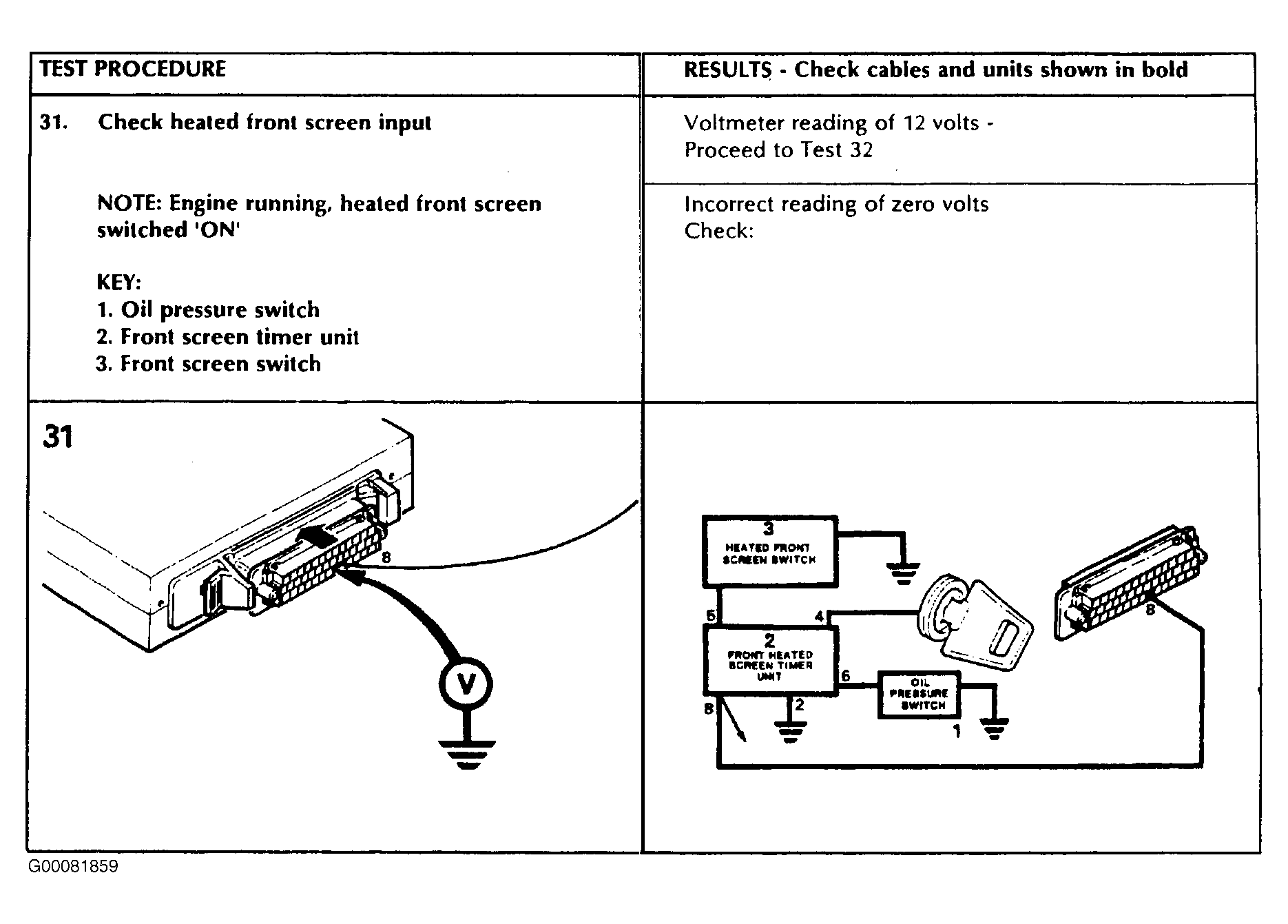 To test front window defogger, see Fig 1 . After completing the tests, retest the vehicle to ensure the faults have been rectified. If faults still persist, recheck using Lucas diagnostic equipment.