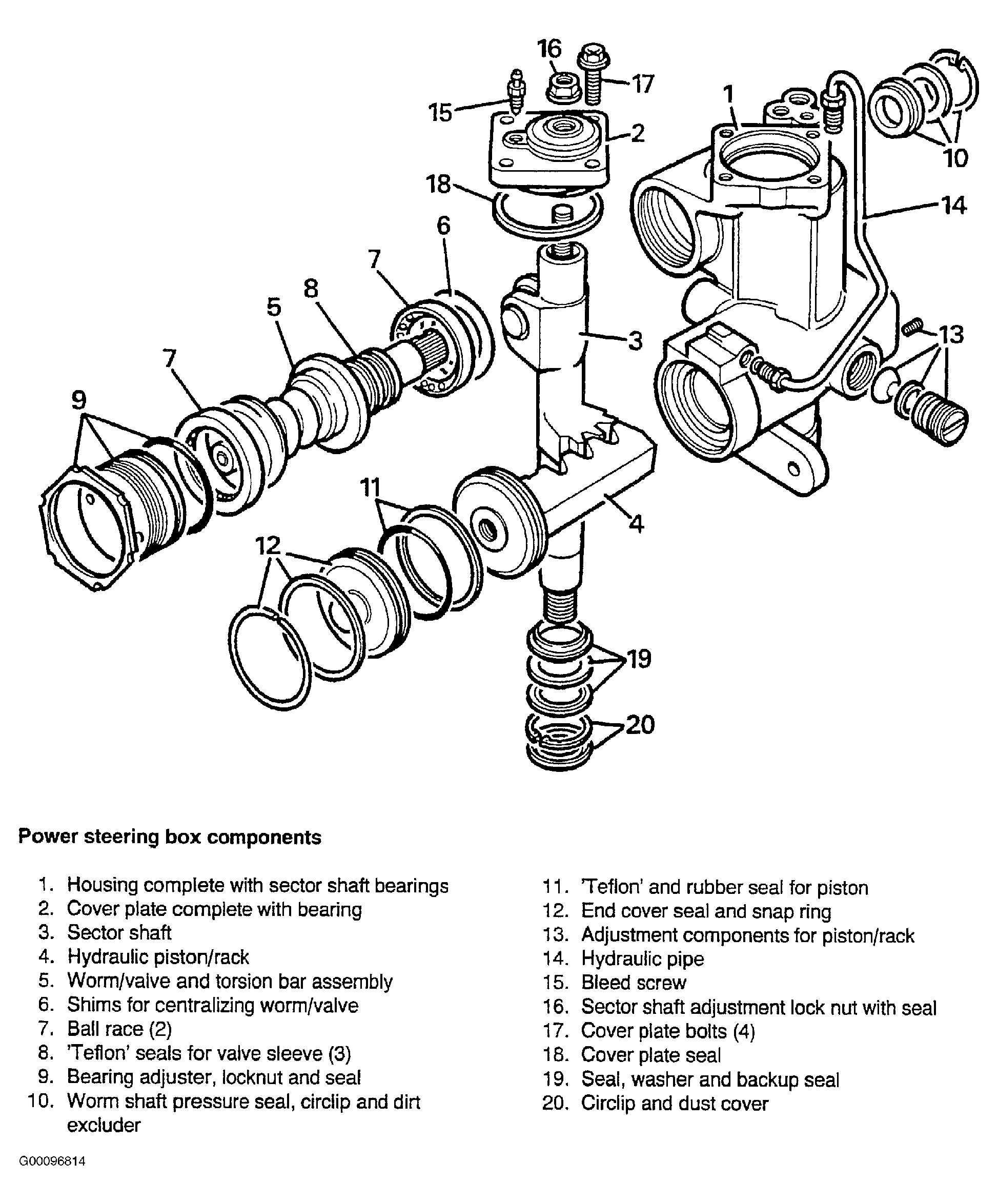 The power steering box is a Adwest Varamatic worm and roller type. The ratio and variable, straight ahead, is 19.3:1 and 17.2:1 on lock. Lock-to-lock it completes 3.375 steering wheel turns. See Fig 1 .