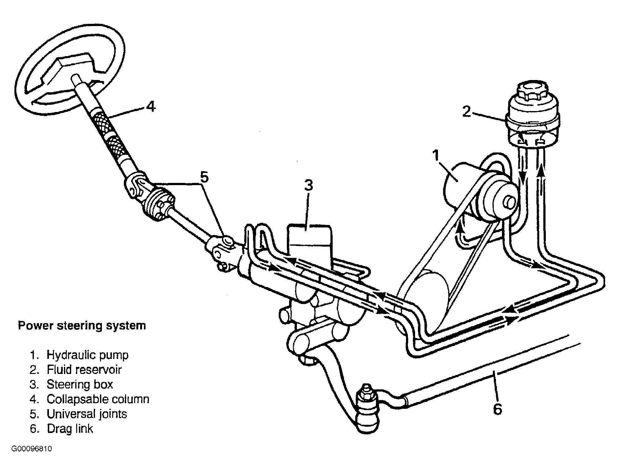 The power steering system comprises an hydraulic pump which is belt driven from the engine and supplied with fluid from a reservoir that also acts as a cooler. See Fig 1 . The steering box houses a self neutralizing rotary valve, which is part of the worm/valve assembly and an hydraulic piston/rack to assist the mechanical operation. The rotary valve which is operated by movement of the steering wheel, directs fluid pressure to the appropriate side of the hydraulic piston/rack to provide assistance.