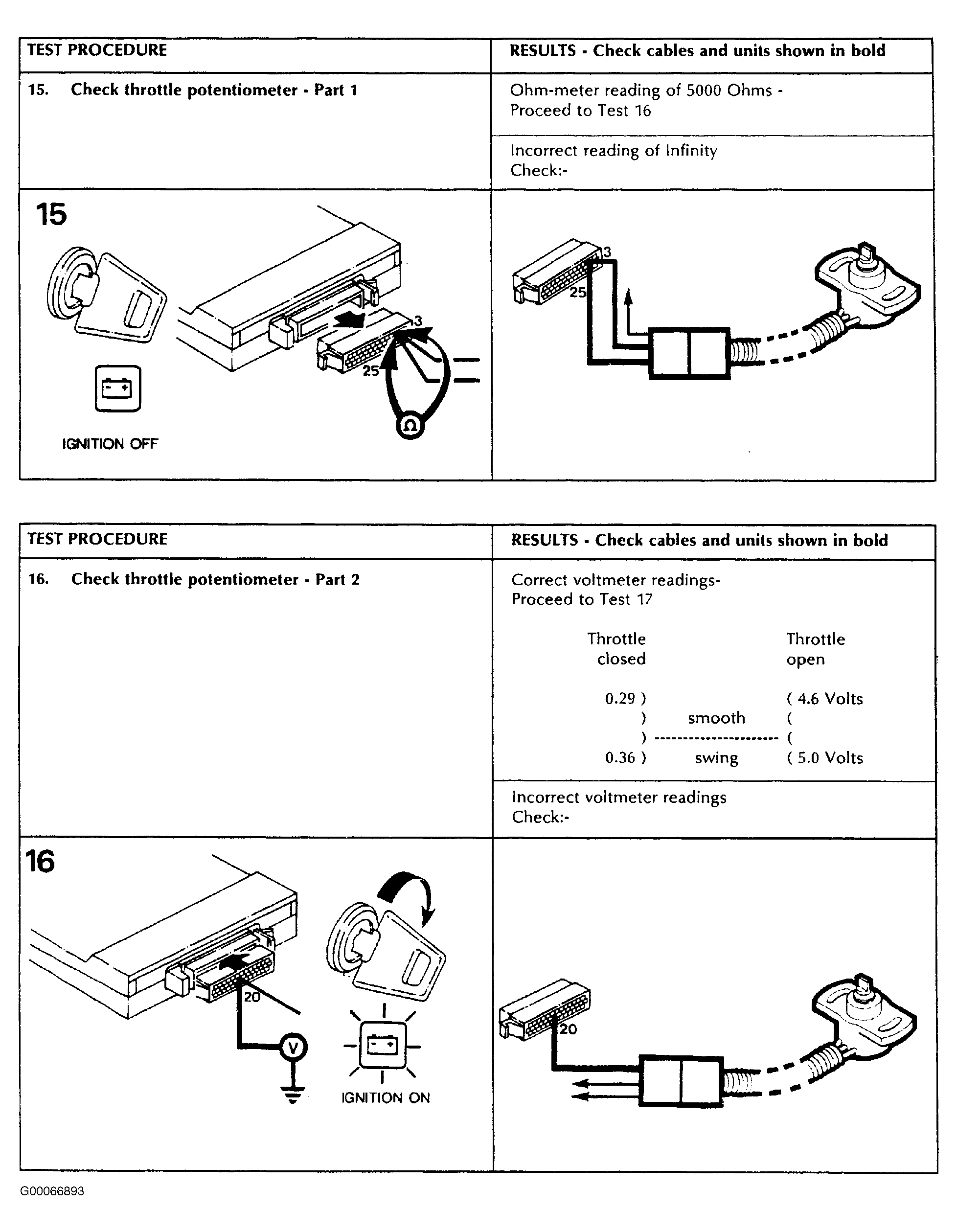 Fig 1: Throttle Position Sensor Test Procedure No. 15 & 16 (1987-88)