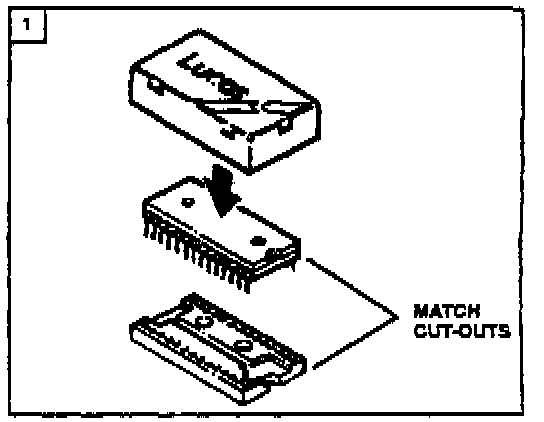 7. Remove the new PROM (PRM3652) from its package and insert it into the socket. Make sure all pins are engaged before pressing PROM fully in socket (figure 1). Snap PROM cover in place. If it doesn't fit. recheck PROM for correct installation.