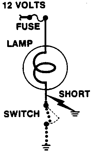 If there is a switch between the load and ground, as with engine warning lamps, another type of problem occurs. The load will be on constantly if the short is between the load and the switch.