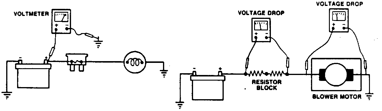 Voltmeters can be used to measure the voltage drop across a load device or conductor. Voltage drop is the loss of voltage caused by the flow of current through a resistance. Increases in either resistance or current flow will increase the voltage drop. The total of all the voltage drops in a circuit should add up to the voltage of the battery.