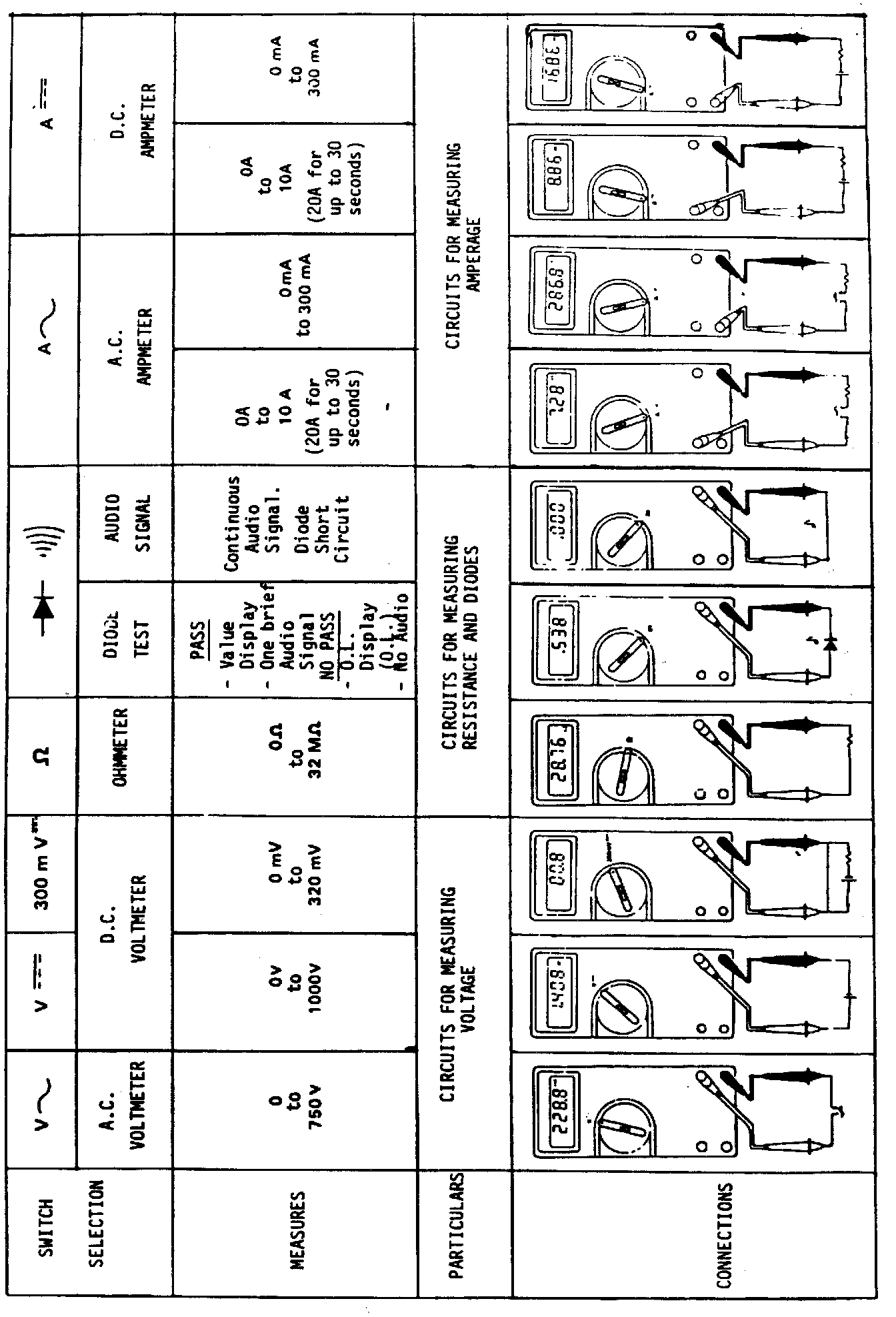 Ammeters measure the amount of current flowing in a circuit. An ammeter can be used to determine if current is flowing in the circuit or if excessive current is flowing due to a short circuit.