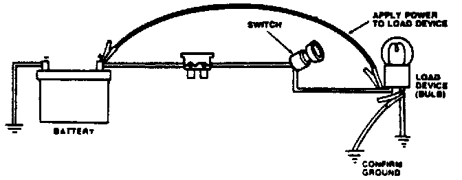CAUTION: NEVER USE A JUMPER WIRE TO BYPASS THE LOAD DEVICE. THE LOW RESISTANCE OF THE JUMPER WIRE IN PARALLEL WITH THE LOAD DEVICE WILL CAUSE EXCESSIVE CURRENT TO FLOW THROUGH THE CIRCUIT, WHICH WILL OPEN THE FUSE OR BURN THE WIRE.
