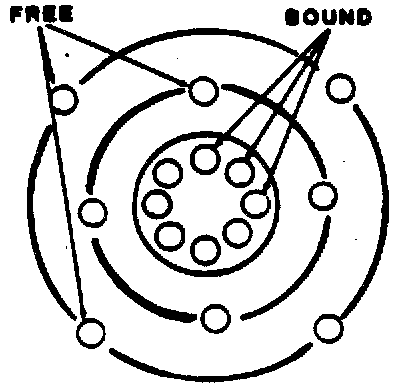 The electrons in an atom revolve in one or more orbits around the core. The number of electrons in the outer orbit affects the ability of the atom to combine with other atoms and its ability to conduct electricity. Atoms tend to complete their outer rings; that is, to acquire as many electrons in the outer ring as possible. Although an atom can not have more electrons than it has protons, it can share electrons in its outer ring with other atoms. This is how atoms join themselves together to form molecules. Electrons in the inner orbits of an atom are closer to the positively charged nucleus and are strongly attached to it. These electrons are called bound electrons. Electrons in the outer orbit are farther from the nucleus and less strongly attracted. These are called free electrons.