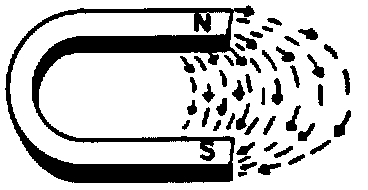 The area or extent of the magnetic field can be determined by means of a compass, which also shows the direction of the lines of force. Note: the lines of force leave the north pole of the magnets and re enter at the south pole; that the lines of force exerted by the horseshoe magnet are more concentrated between the two poles of the magnet.