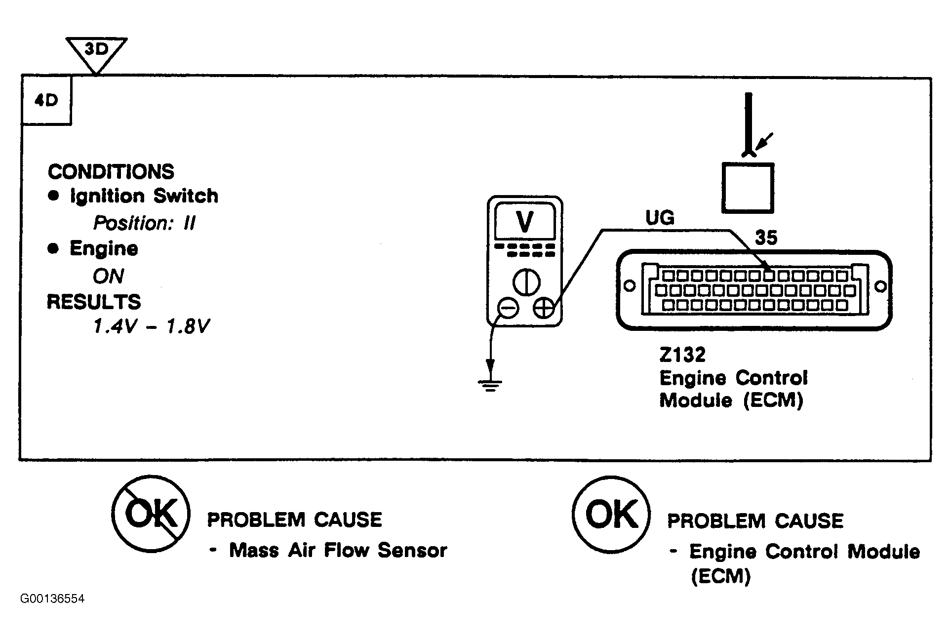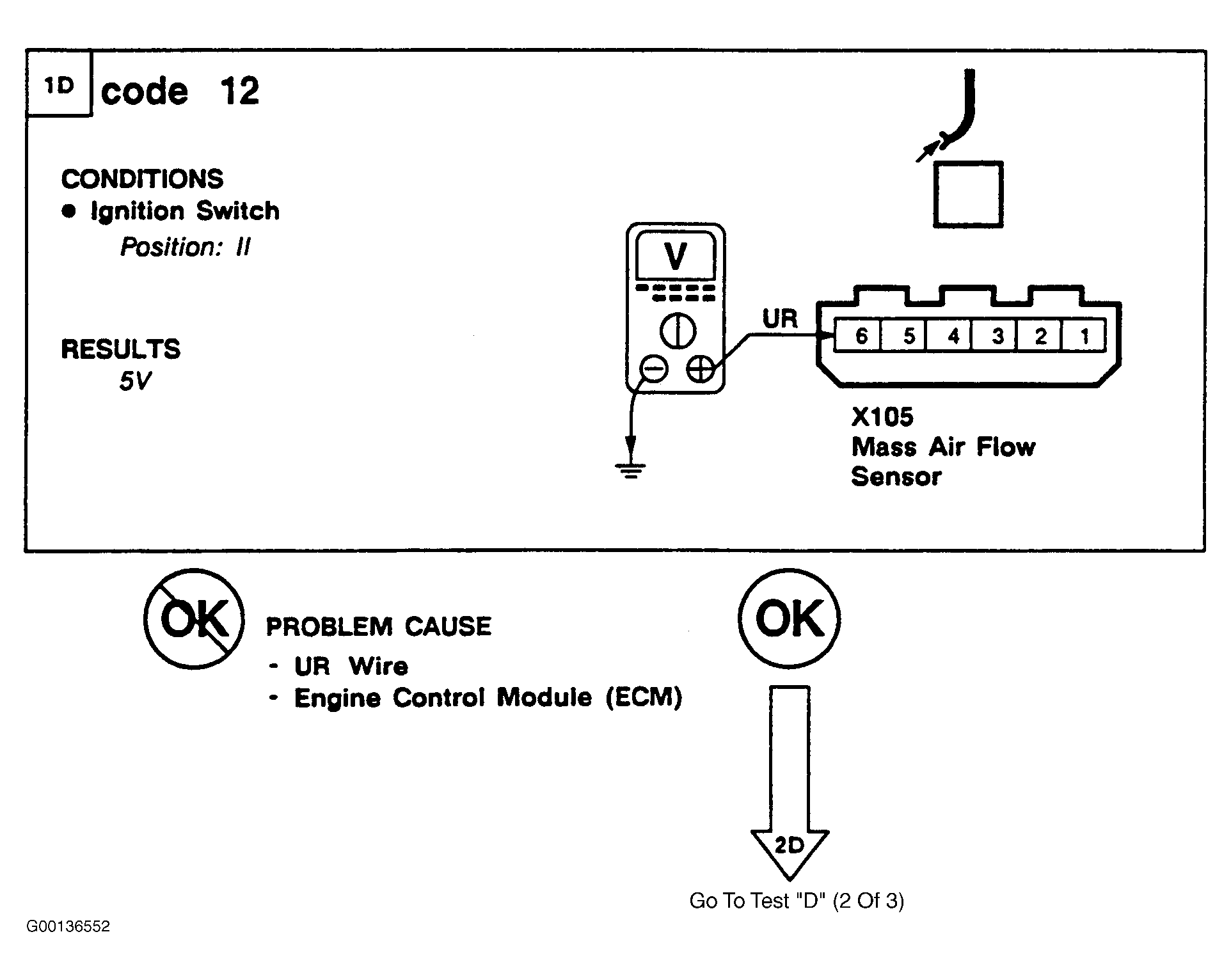 Test mass airflow sensor. Perform Test "D". See Fig 1