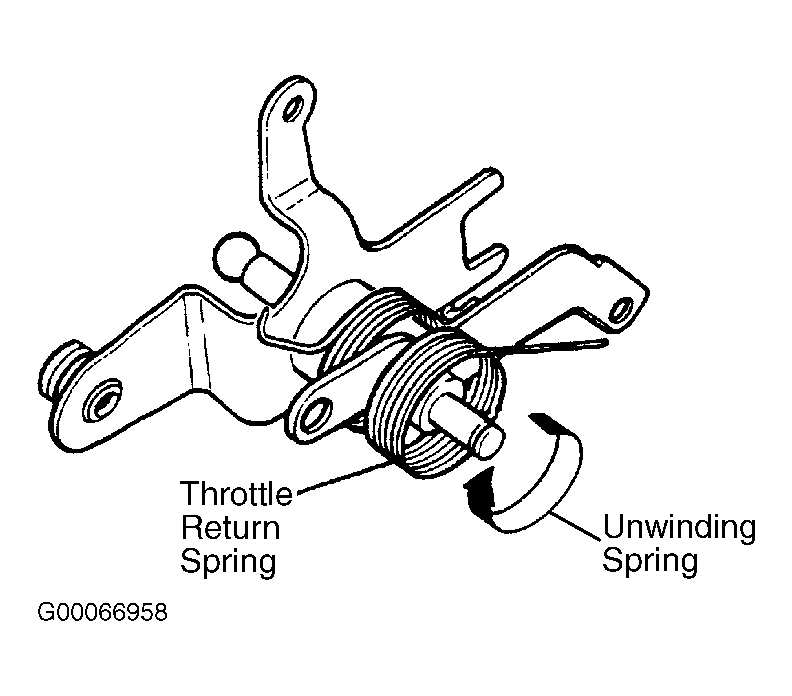 . If worn install new assembly, otherwise wind throttle return spring off levers. Wind NEW spring onto countershaft assembly, small hooked end of spring is wound on first.