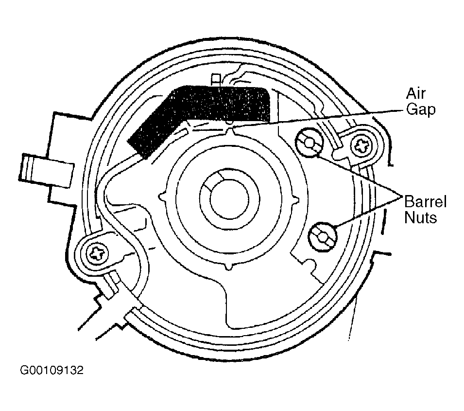 3. Check air gap between pick-up limb and reluctor teeth, using a non-ferrous gauge. Air gap should be .008-.014" (.20-.35 mm). See Fig 1 . Air gap is set initially at factory and will only require adjusting if tampered with or when pickup module is replaced.