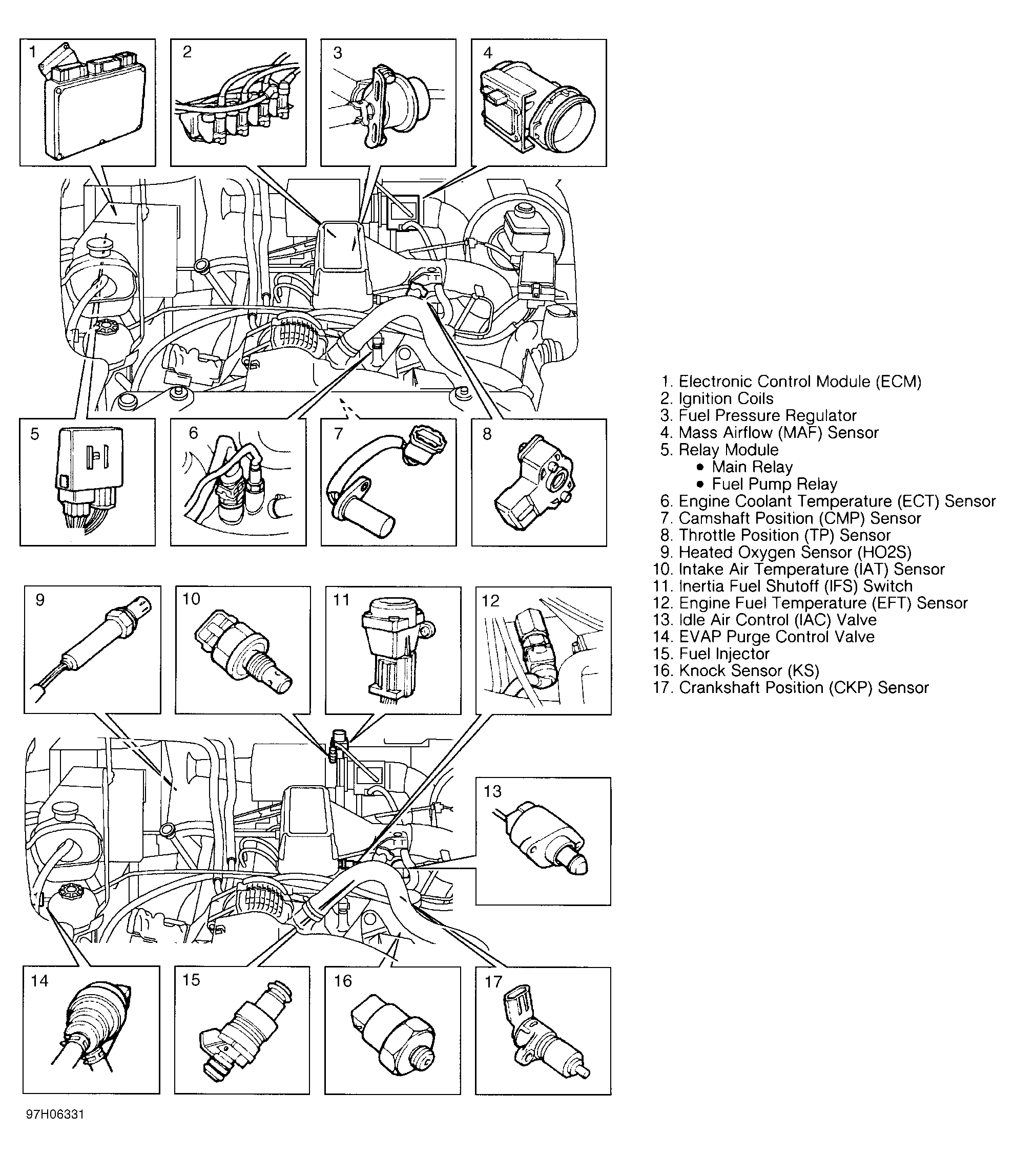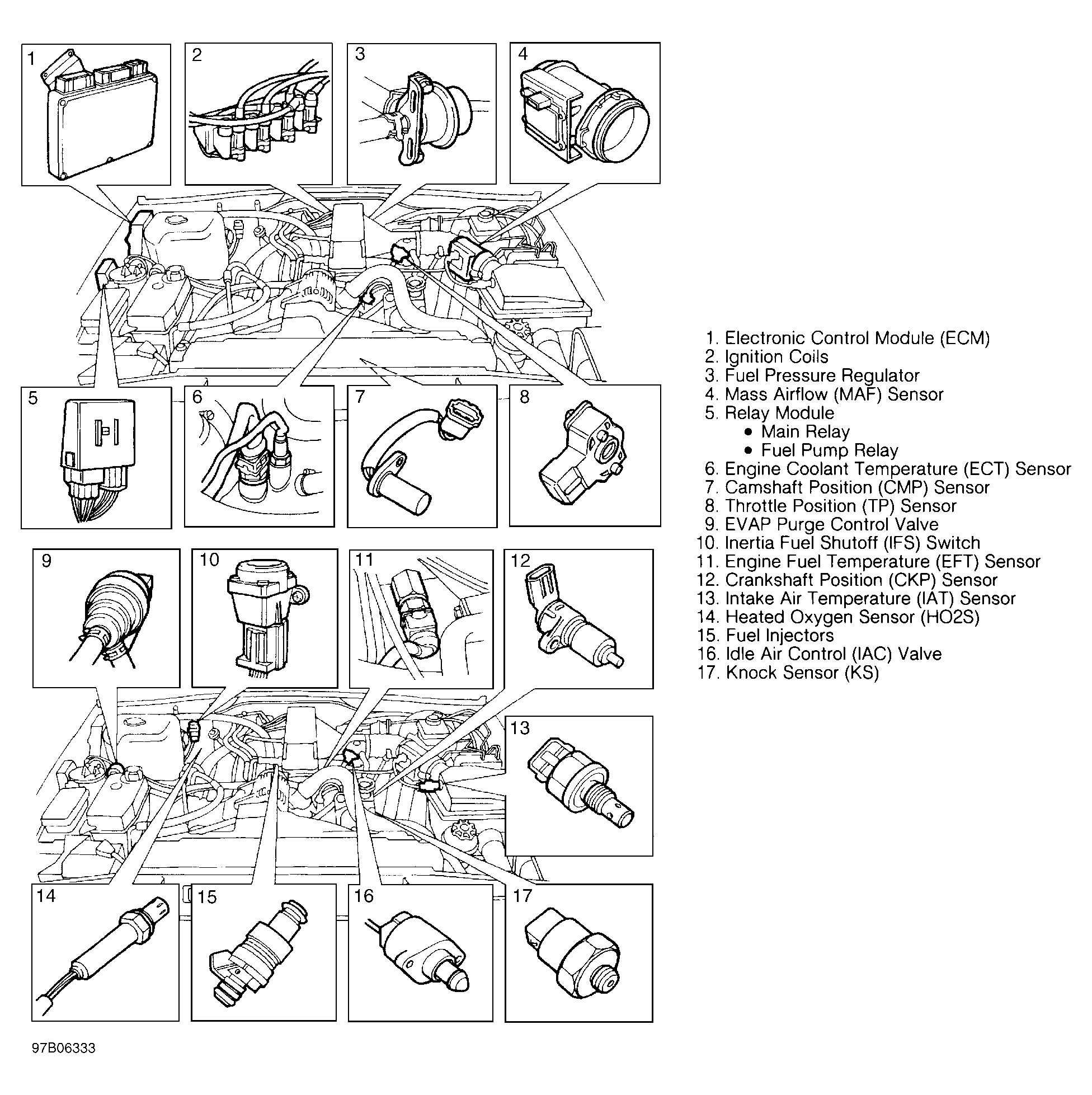 The main relay supplies power to the ECM, fuel injectors (8 amps) and Mass Airflow (MAF) sensor (4 amps). Relay is controlled by the ECM which has a second power feed. This enables the ECM to remain powered up after the ignition is turned off. During ECM power down, the ECM records all temperature readings and powers the IAC to the cold start position. Failure of this relay will result in the ECM not being powered up, resulting in engine not starting due to absence of fuel and ignition.