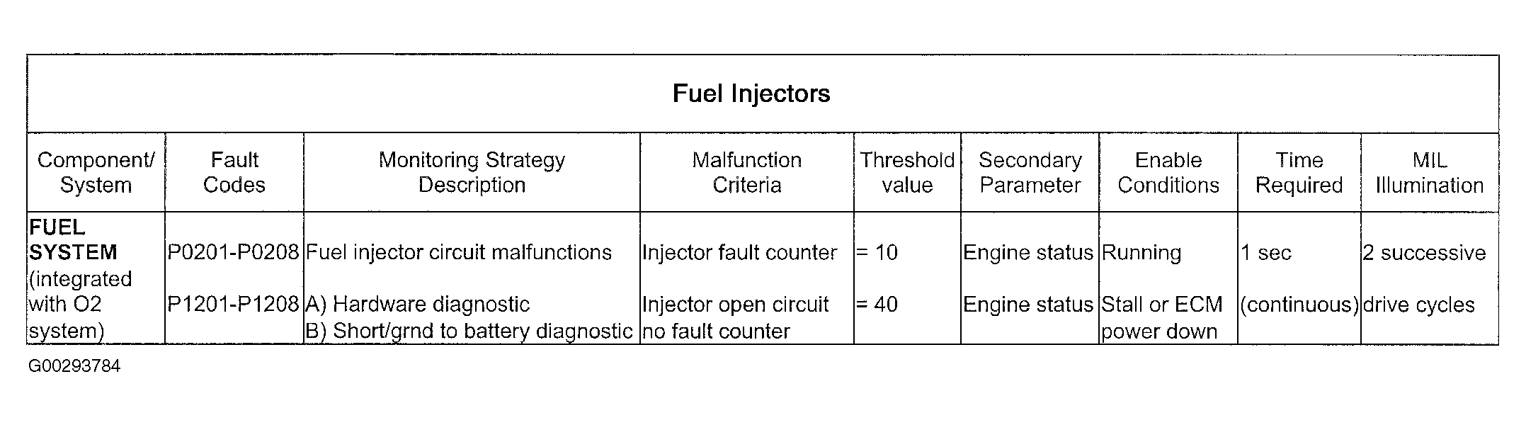 This monitor covers information for DTC P0201-P0208 and P1201-P1208.