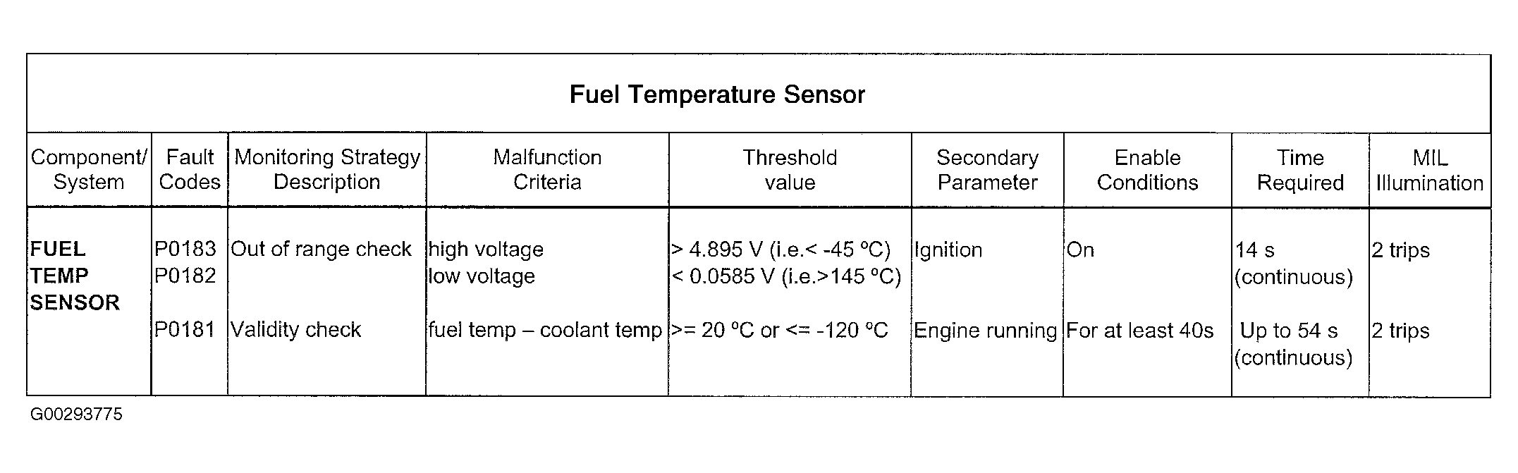 For fuel temperature sensor monitoring information see Fig 1