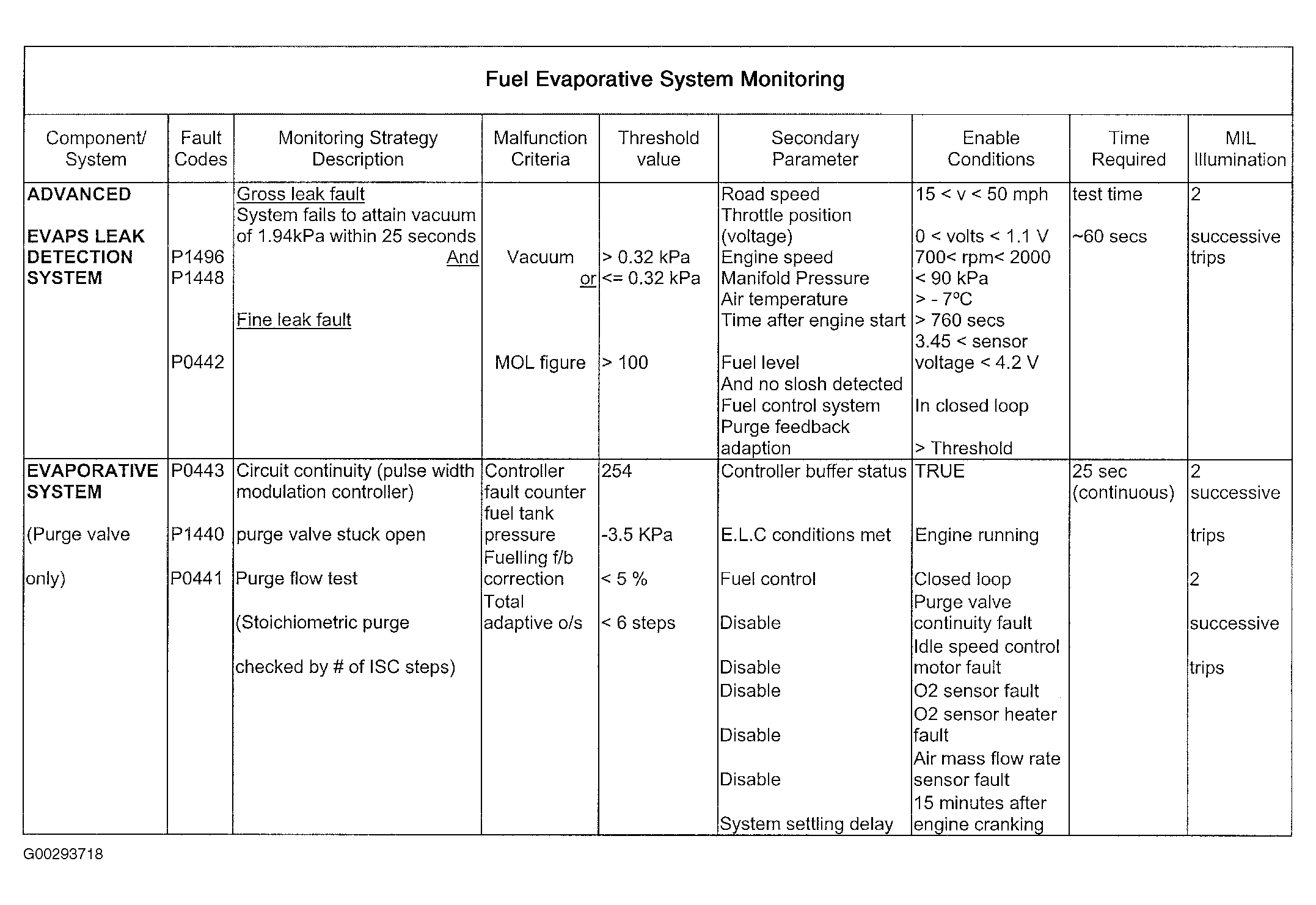 This monitor covers information for DTC P0442-P0443, P1440, P1448 and P1496.