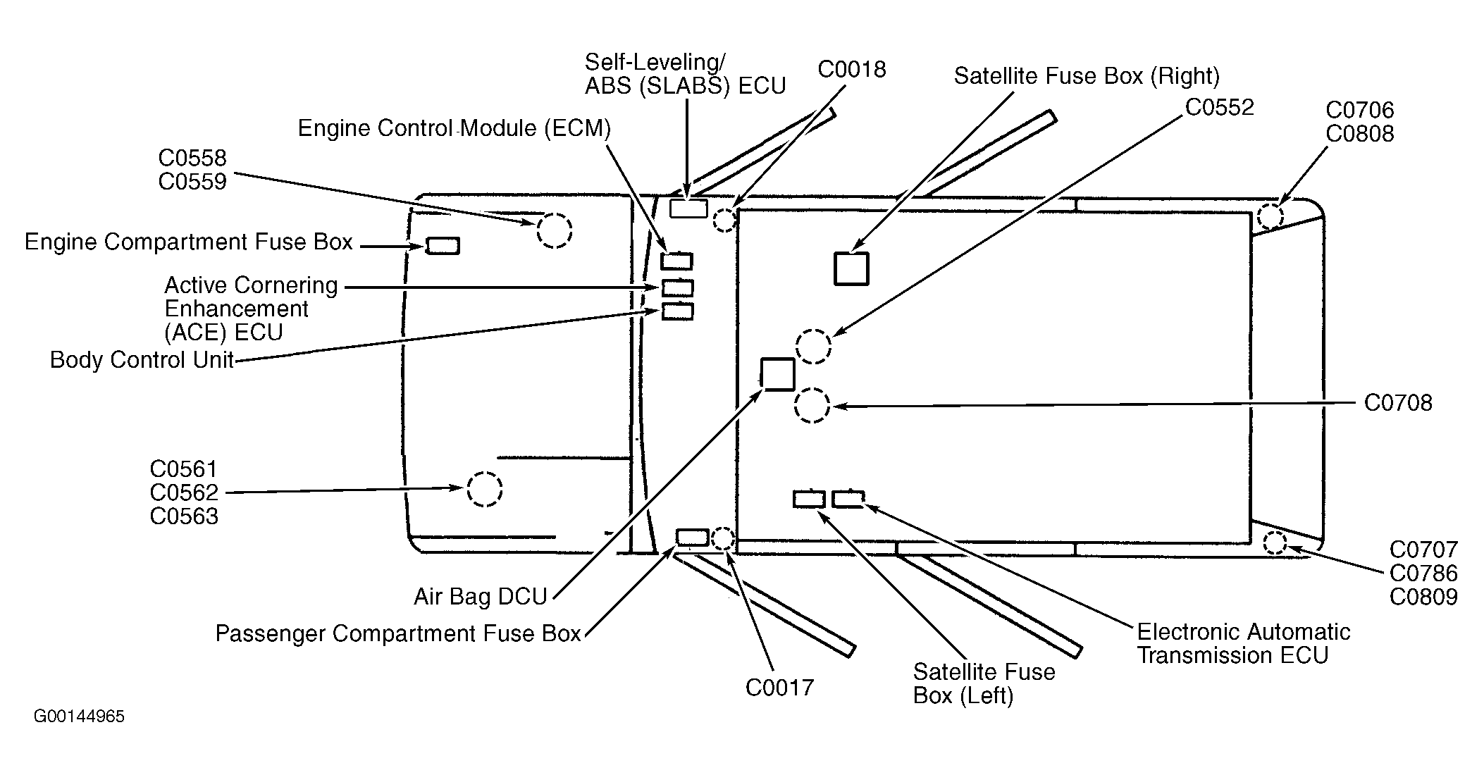 | Satellite Fuse Box (Left) | Under left front seat. See Figure . |