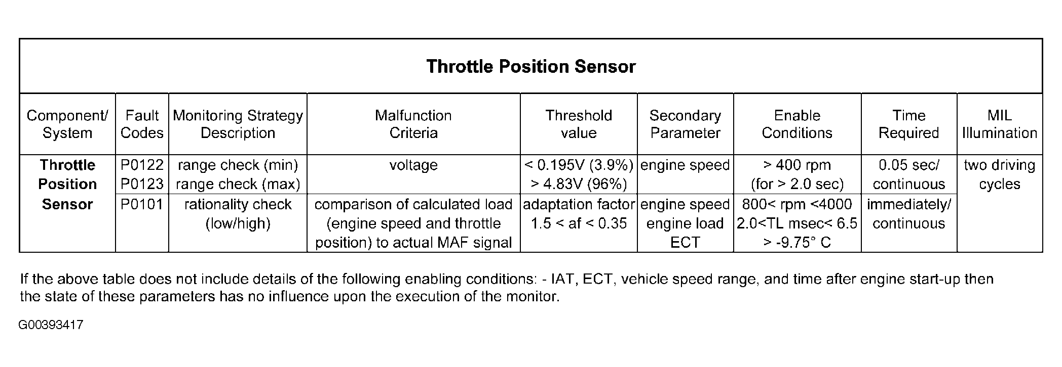 The sensor is a variable resistor, which is used to determine the position of the throttle plate and the rate of change in its angle. A software strategy within the ECM enables the closed throttle position to be learned, enabling the sensor to be fitted without the need for adjustment. The signal is used by the ECM as part of the transient fuelling strategy and to determine the closed throttle position for idle speed control, in conjunction with road speed.