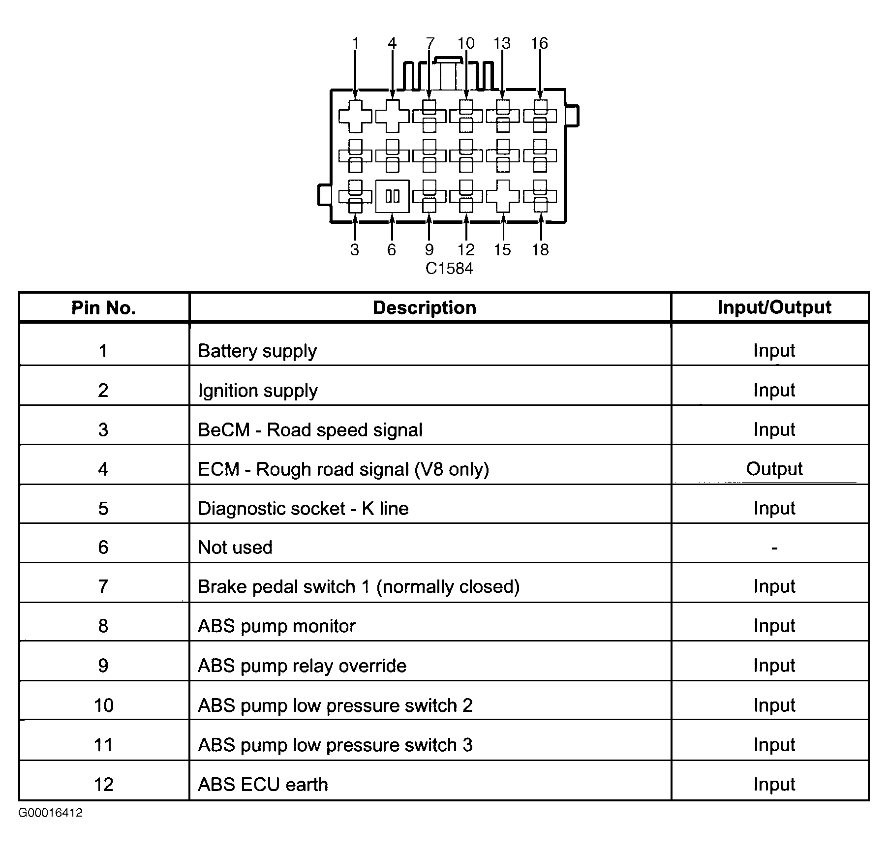 Fig 1: Identifying ABS ECU Connector C1584 Terminals