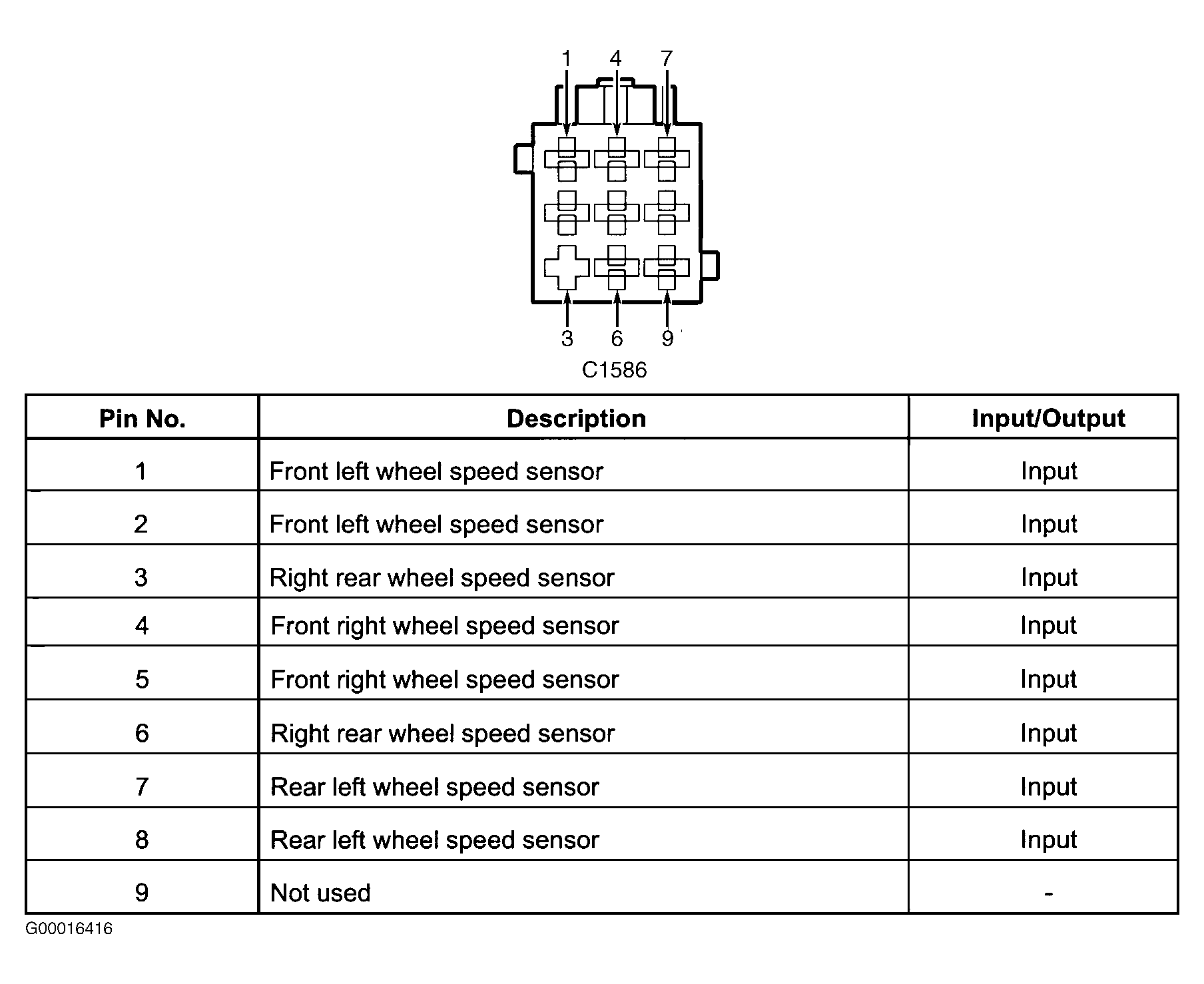 Fig 3: Identifying ABS ECU Connector C1586 Terminals