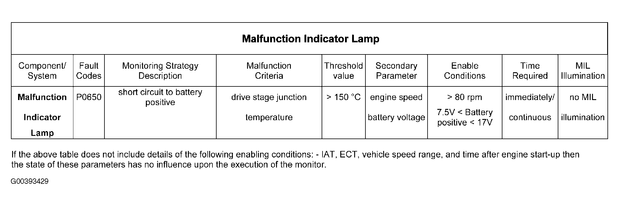 - MIL driver short circuit to battery positive, i.e. the driver stage junction temperature exceeds a temperature threshold.