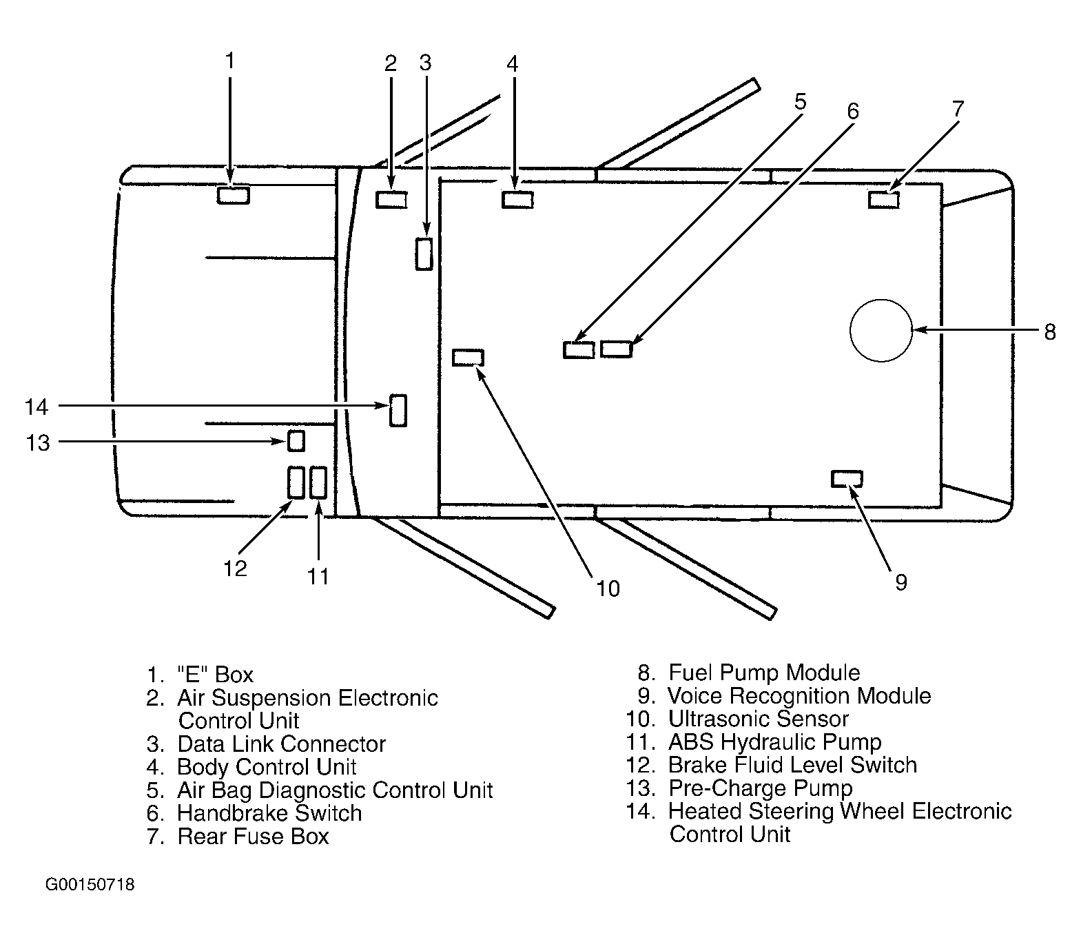 Behind right side of luggage compartment trim panel. See Figure