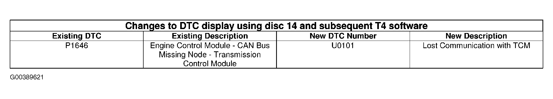 To provide compatibility with later 2005 model year DTCs, from disc 14 of the Range Rover TestBook/T4 diagnostic software, the DTCs in the following table will be displayed with new DTC numbers and descriptions. See Fig 1