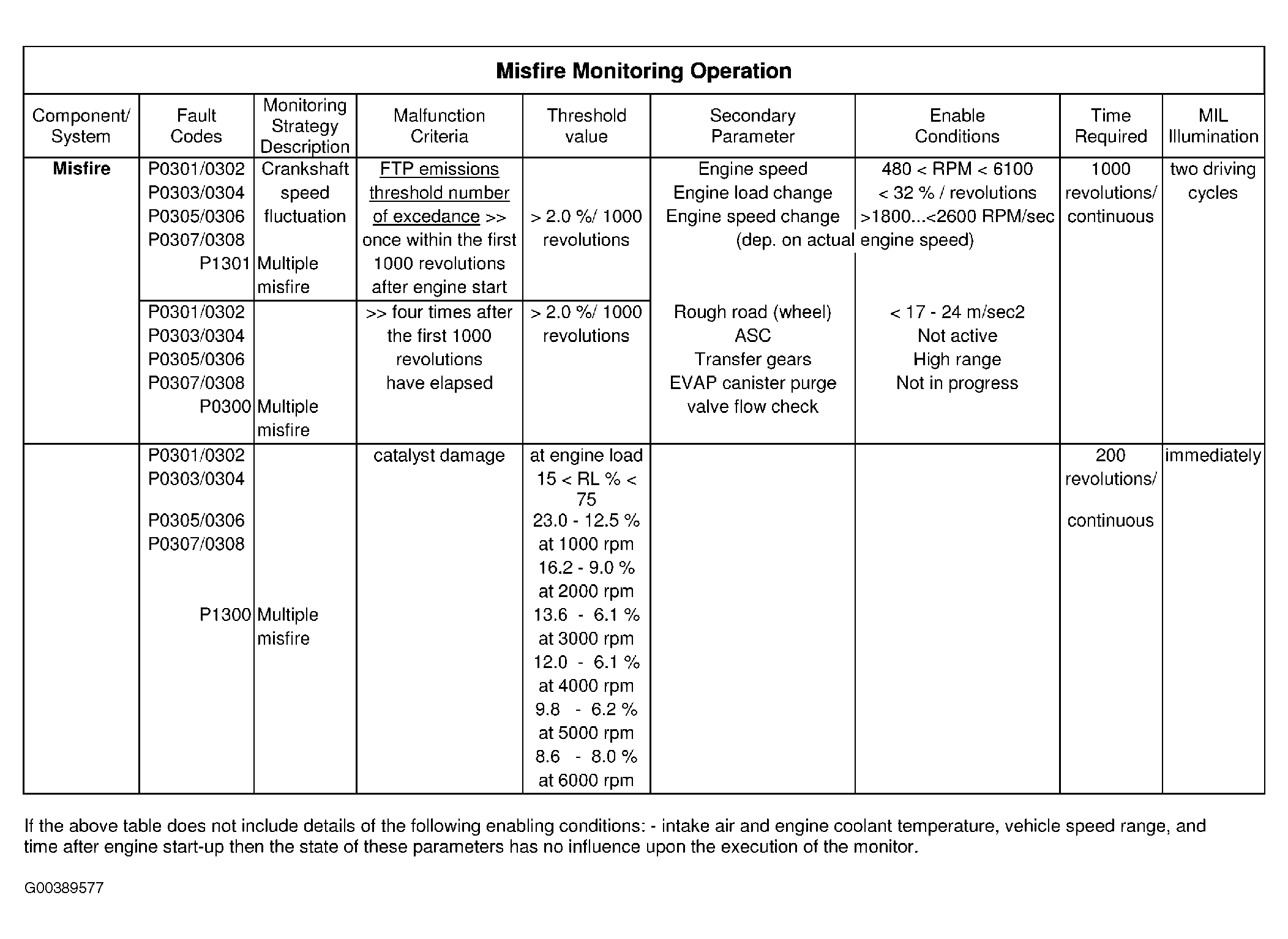 Fig 1: Misfire Monitoring Operation & Enabling Conditions