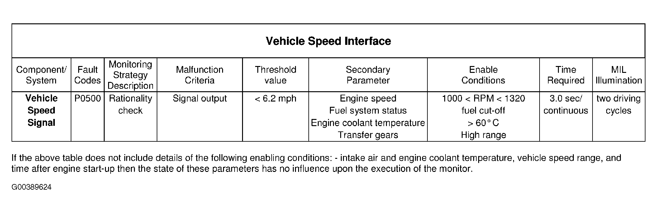 There is one Vehicle Speed Interface diagnostic checks, a fault is detected if: