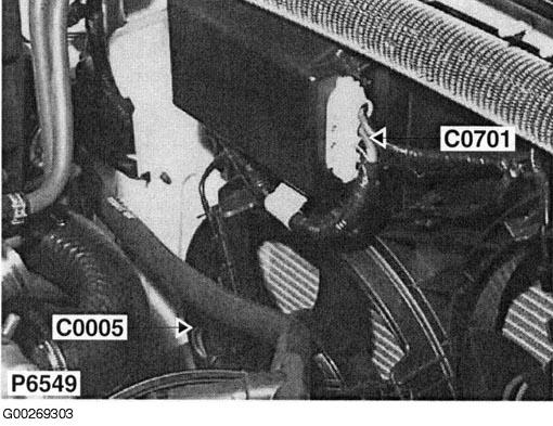 | Cooling Fan Control Unit Connector (C0701) | At left side of engine compartment. See Figure . |