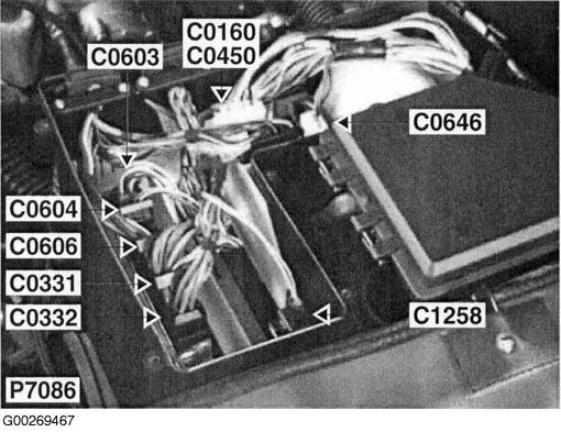 | Engine Control Module Connector (C0604) | Inside "E" box. See Figure . |