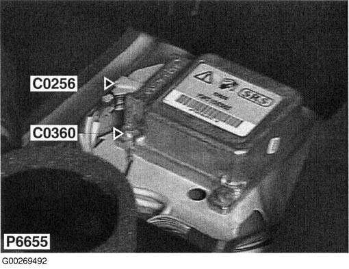 | Air Bag DCU Connector (C0256) | Behind center console. See Figure . |