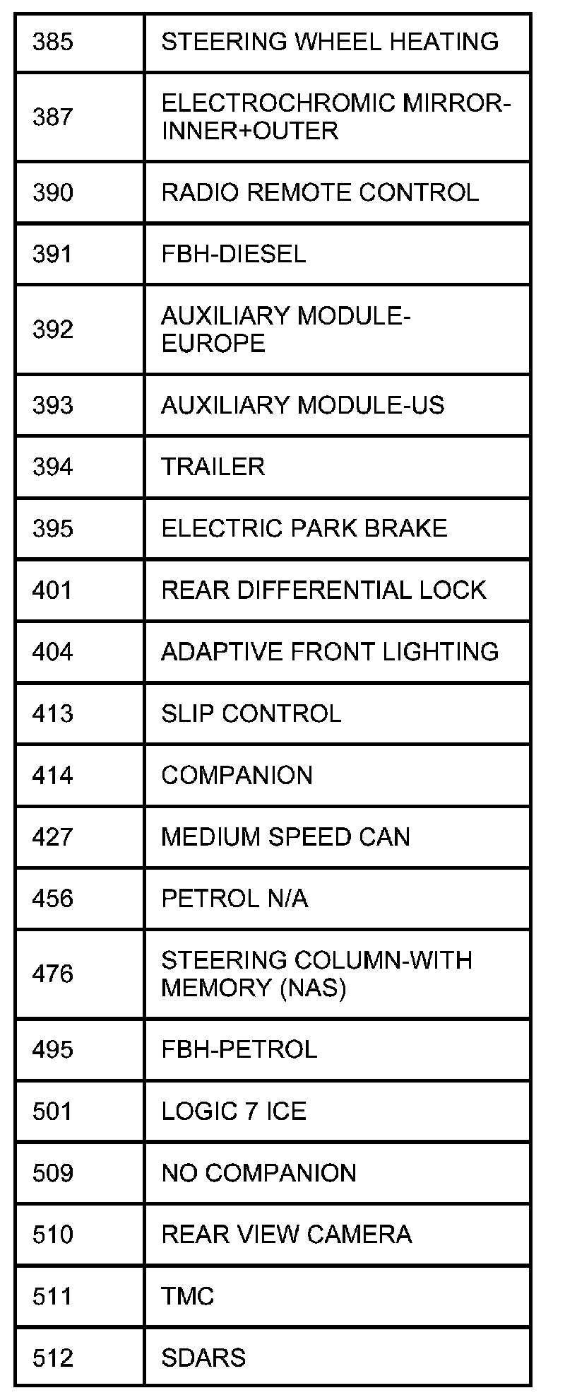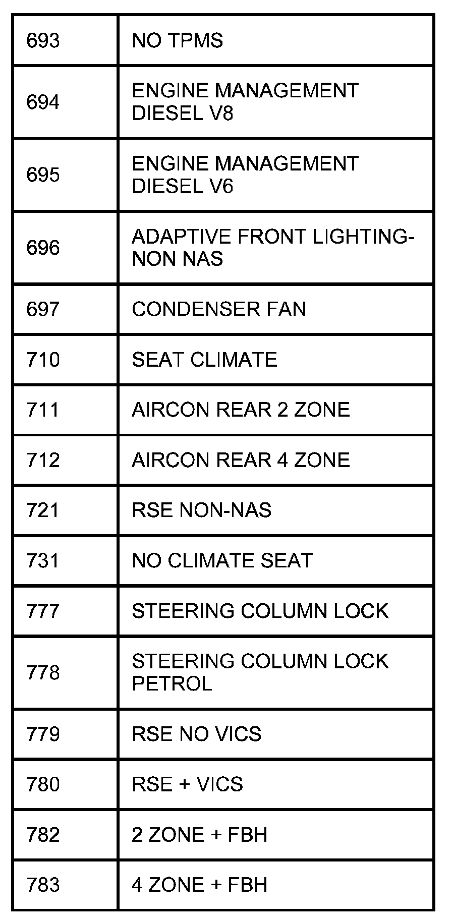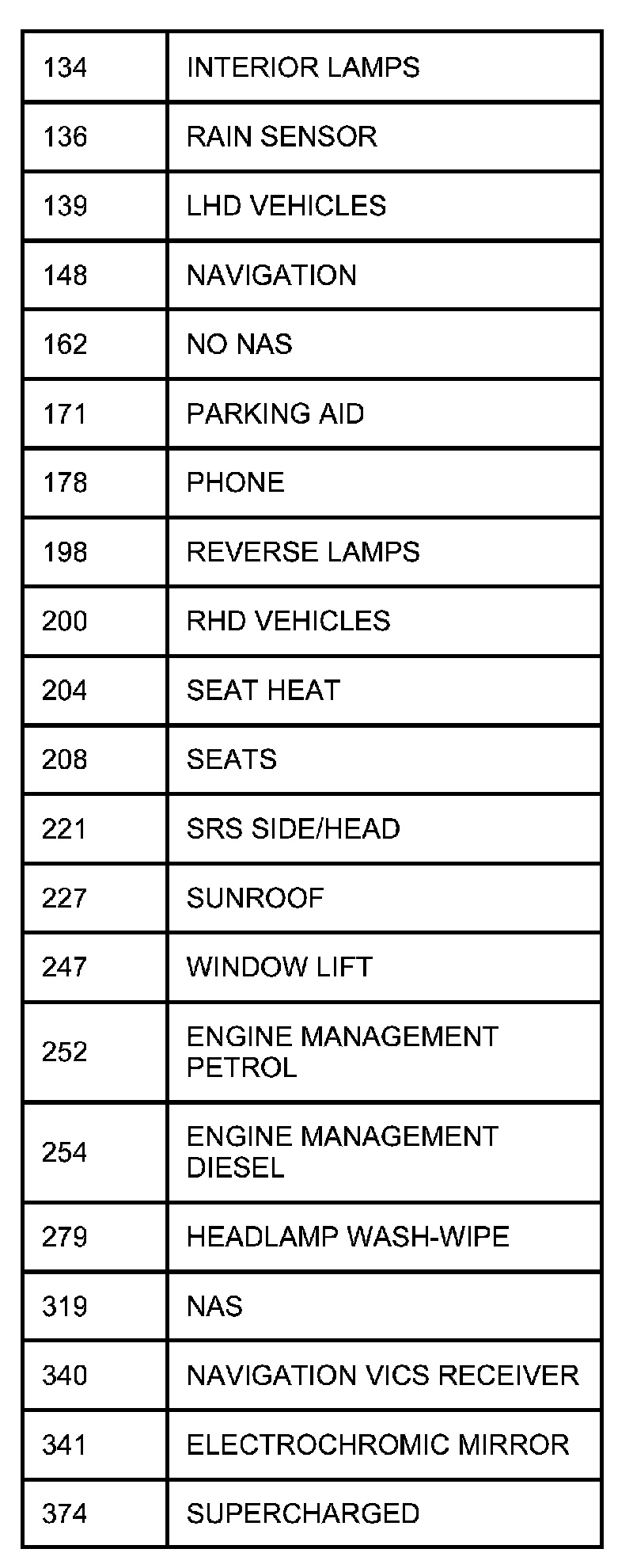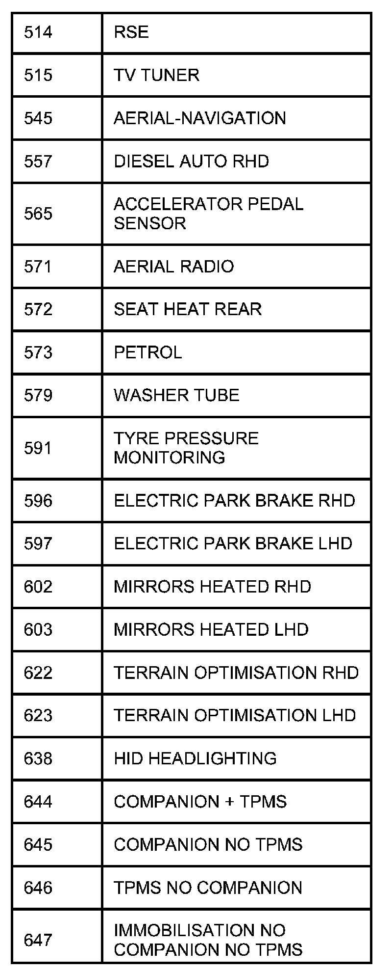 Home >> Land Rover >> 2009 >> Range Rover (LM) V8-4.2L SC >> Repair and Diagnosis >> Powertrain Management >> Computers and Control Systems >> Engine Control Module >> Diagrams >> Diagram Information and Instructions >> Table of Circuit Option Codes
