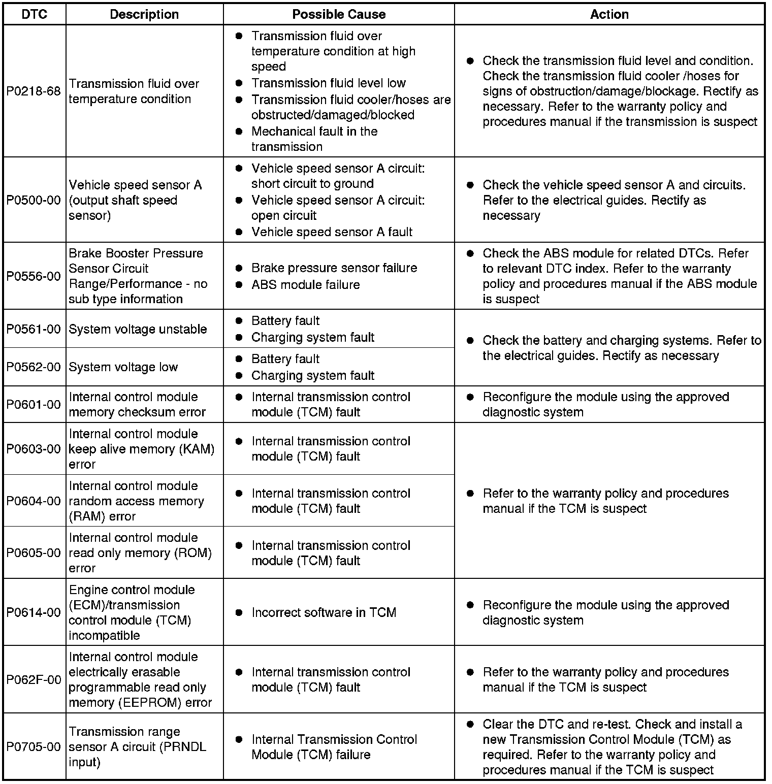 Generic scan tools may not read the codes listed, or may read only 5-digit codes. Match the 5 digits from the scan tool to the first 5 digits of the 7-digit code listed to identify the fault (the last 2 digits give extra information read by the manufacturer-approved diagnostic system).