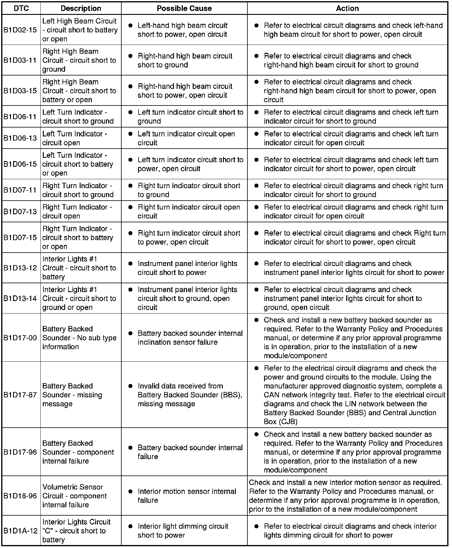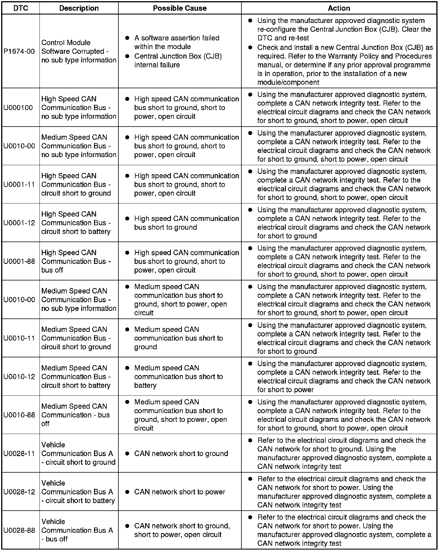 Generic scan tools may not read the codes listed, or may read only 5-digit codes. Match the 5 digits from the scan tool to the first 5 digits of the 7-digit code listed to identify the fault (the last 2 digits give extra information read by the manufacturer-approved diagnostic system).