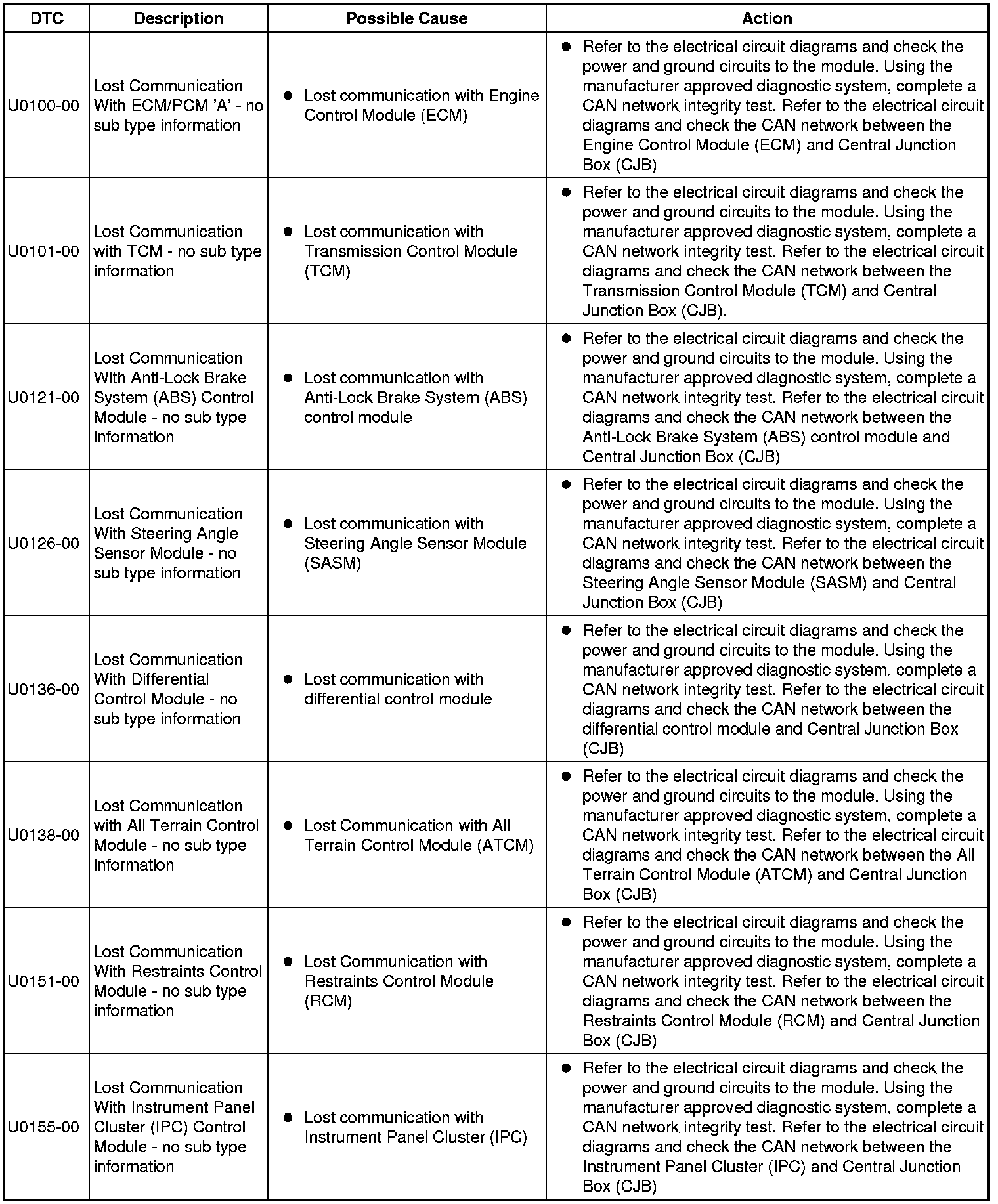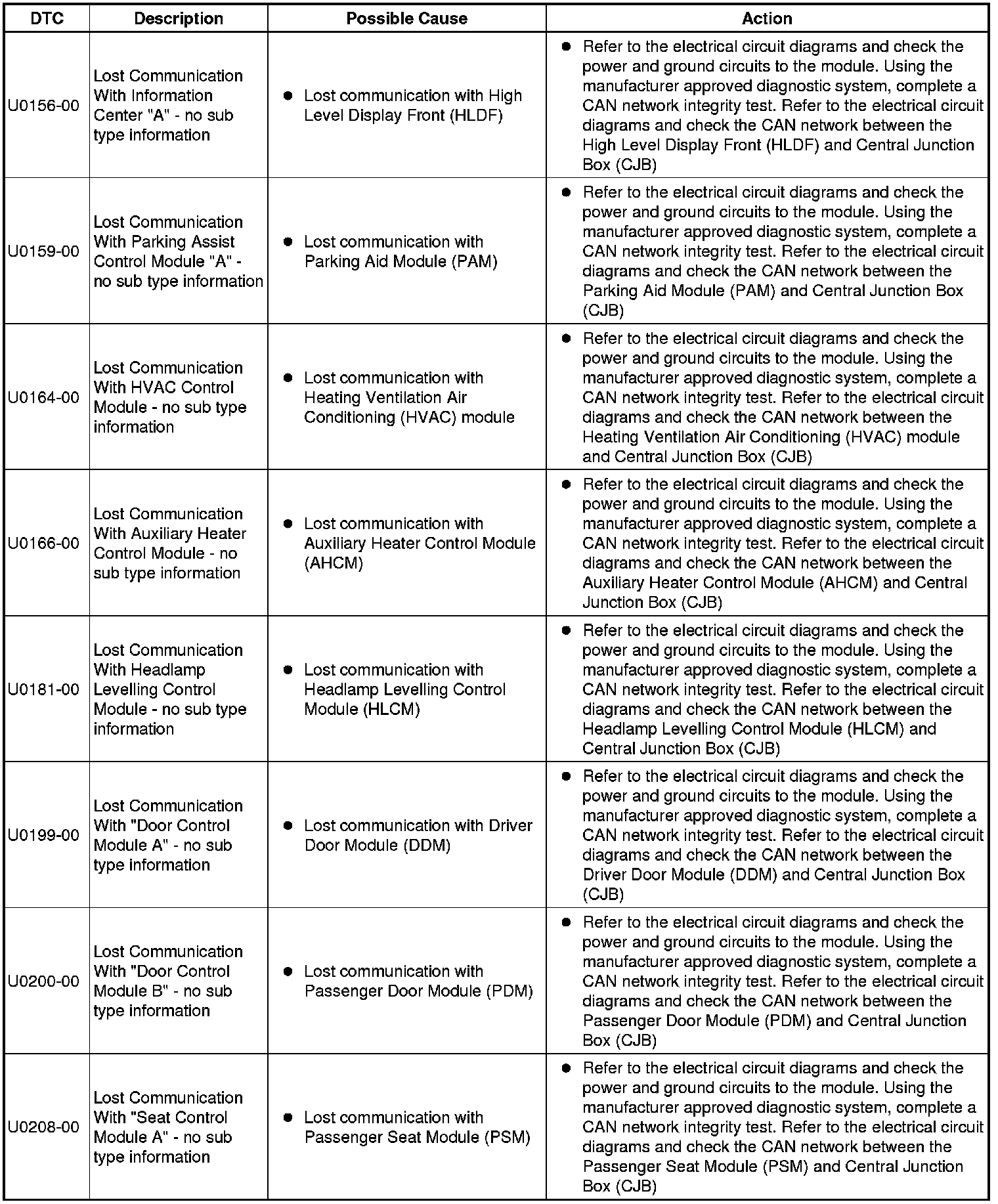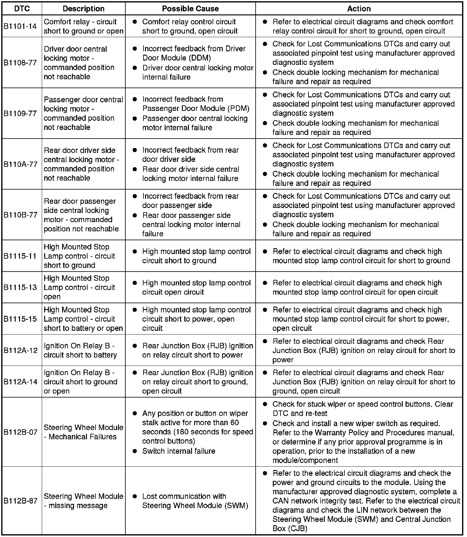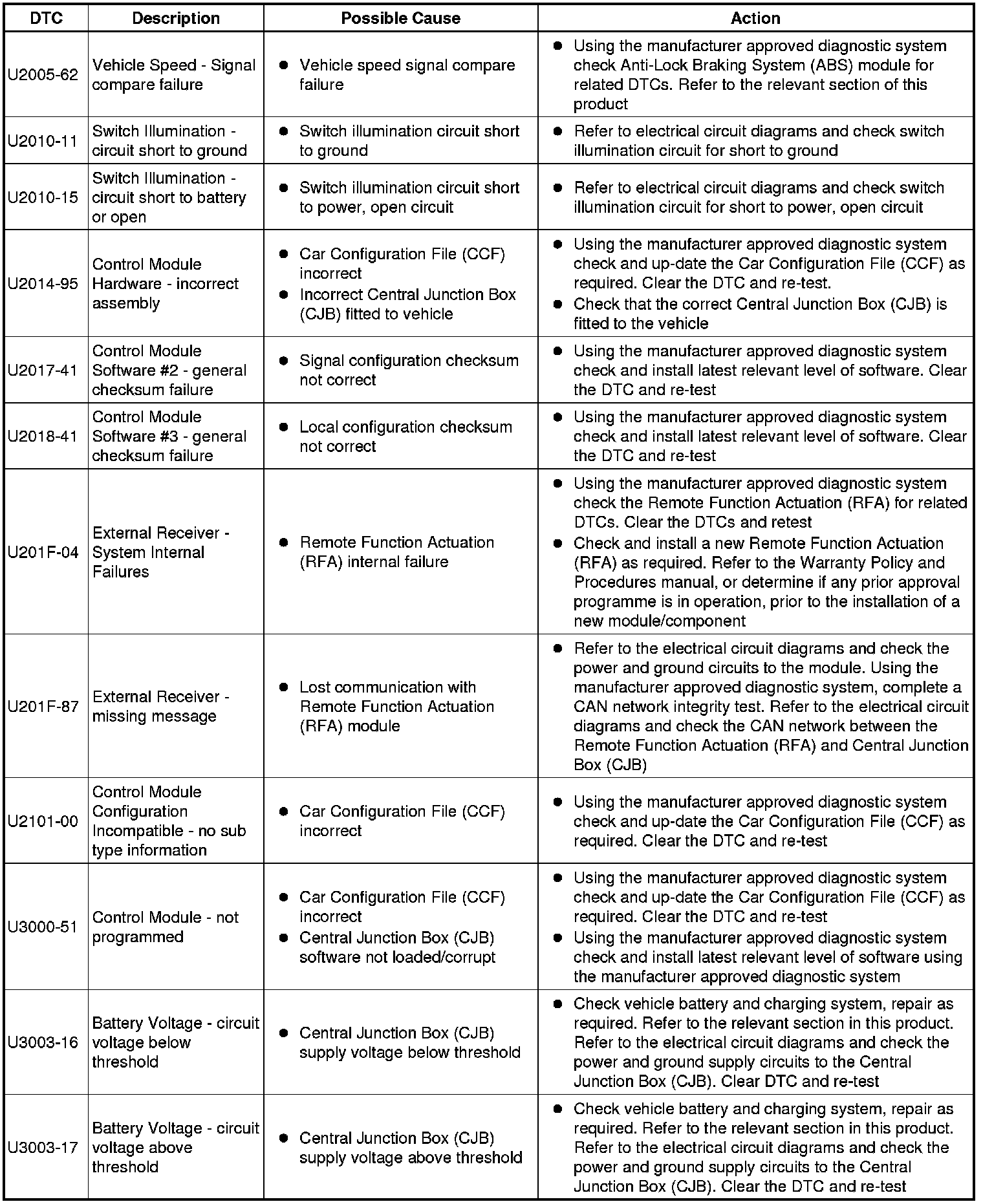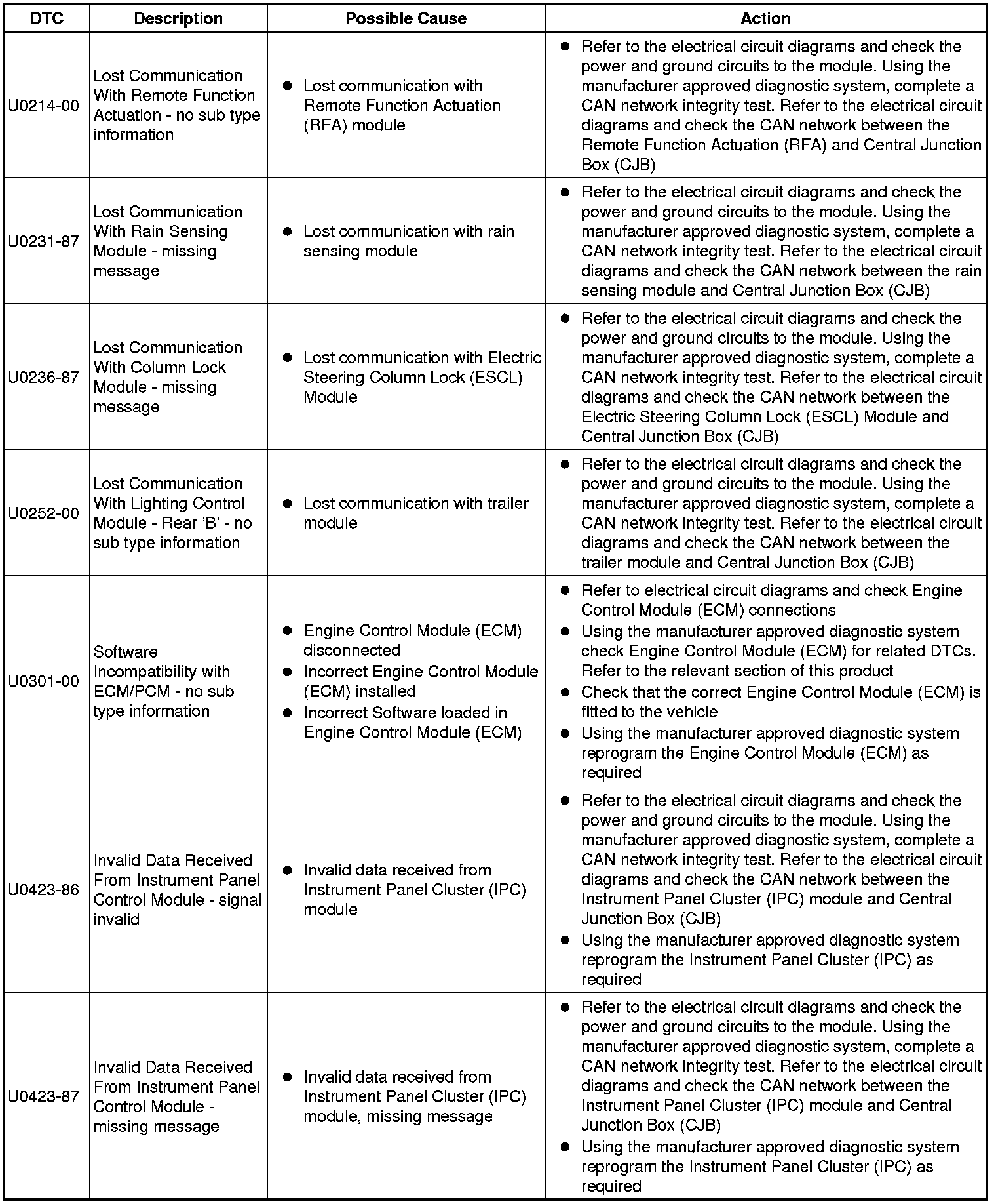 For a detailed description of the body control system, refer to the relevant Description and Operation section in this product. For additional information, refer to Communications Network Testing and Inspection