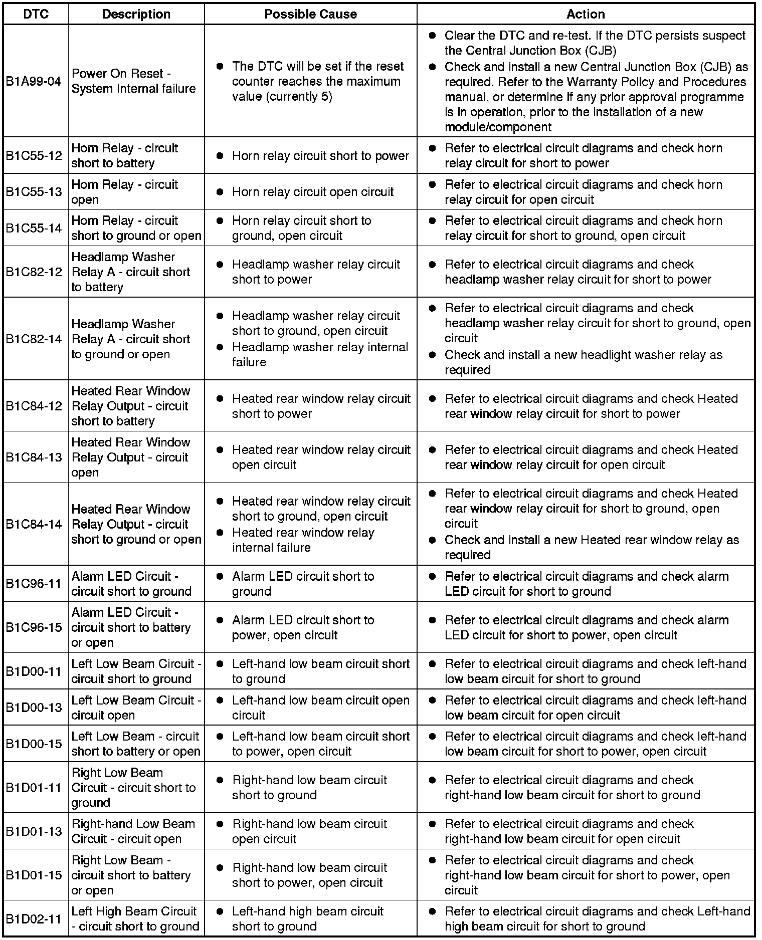 Diagnostic Trouble Code (DTC) Index