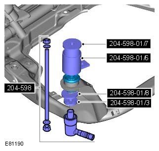 - Special tool 204-598-01/8 is used to start the bushing removal process, and must be removed after the bushing has released, as it will not pass through the sub-frame bushing aperture.