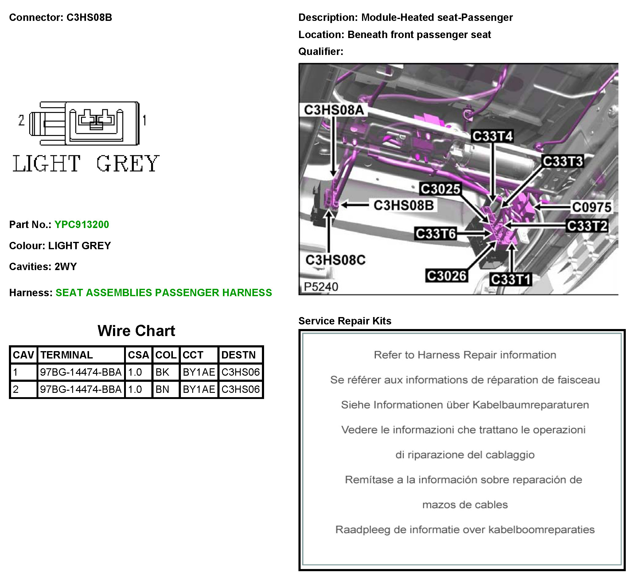 C3HS08B Module-Heated Seat-Passenger