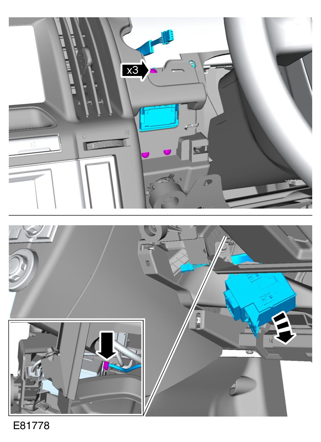 7 Adjust the steering column to its lowest position.