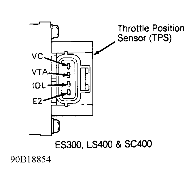 - Ensure throttle valve is fully closed. Ensure continuity is present between Throttle Position Sensor (TPS) terminals IDL and E2. See Fig 2. Ensure engine valve timing is correct.