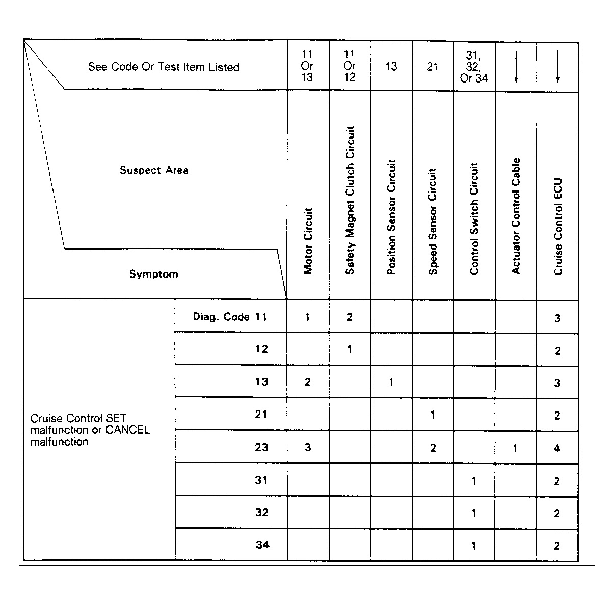 If a malfunction code is present (diagnostic code confirmed), perform procedure indicated by the chart in Figure. See TESTING in this article. If the instructions "go to next inspection item shown on matrix chart" are given in TESTING procedure(s), inspect the next highest numbered item listed.